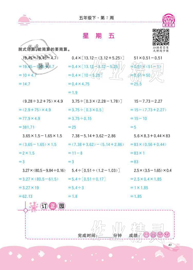 注:目前有些书本章节名称可能整理的还不是很完善,但都是按照顺序排列的,请同学们按照顺序仔细查找。练习册 2021年小学数学计算高手五年级下册冀教版北京联合出版公司 答案主要是用来给同学们做完题方便对答案用的,请勿直接抄袭。