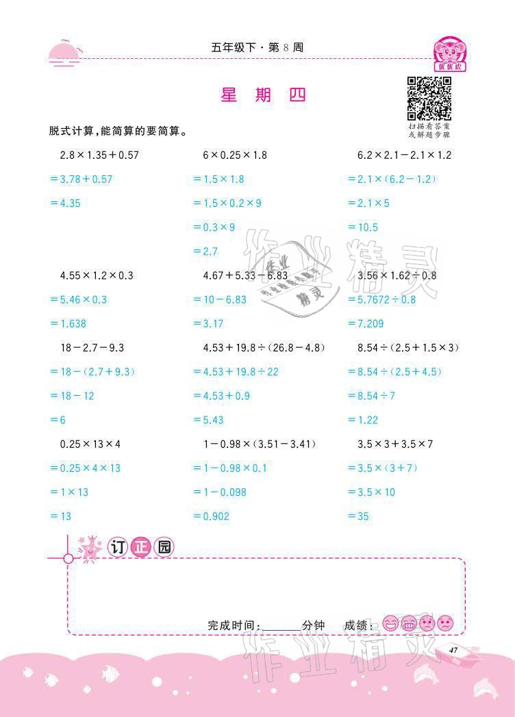 注:目前有些书本章节名称可能整理的还不是很完善,但都是按照顺序排列的,请同学们按照顺序仔细查找。练习册 2021年小学数学计算高手五年级下册冀教版北京联合出版公司 答案主要是用来给同学们做完题方便对答案用的,请勿直接抄袭。