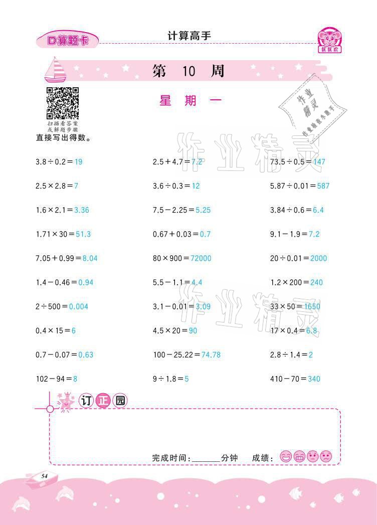 注:目前有些书本章节名称可能整理的还不是很完善,但都是按照顺序排列的,请同学们按照顺序仔细查找。练习册 2021年小学数学计算高手五年级下册冀教版北京联合出版公司 答案主要是用来给同学们做完题方便对答案用的,请勿直接抄袭。