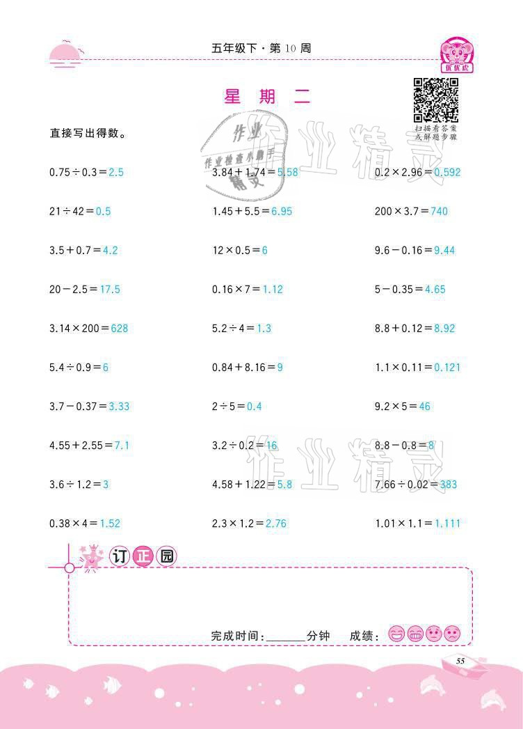 注:目前有些书本章节名称可能整理的还不是很完善,但都是按照顺序排列的,请同学们按照顺序仔细查找。练习册 2021年小学数学计算高手五年级下册冀教版北京联合出版公司 答案主要是用来给同学们做完题方便对答案用的,请勿直接抄袭。