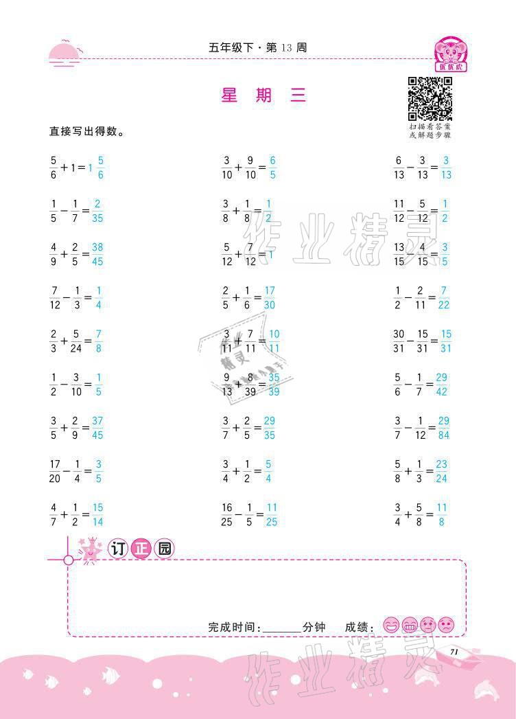 注:目前有些书本章节名称可能整理的还不是很完善,但都是按照顺序排列的,请同学们按照顺序仔细查找。练习册 2021年小学数学计算高手五年级下册冀教版北京联合出版公司 答案主要是用来给同学们做完题方便对答案用的,请勿直接抄袭。
