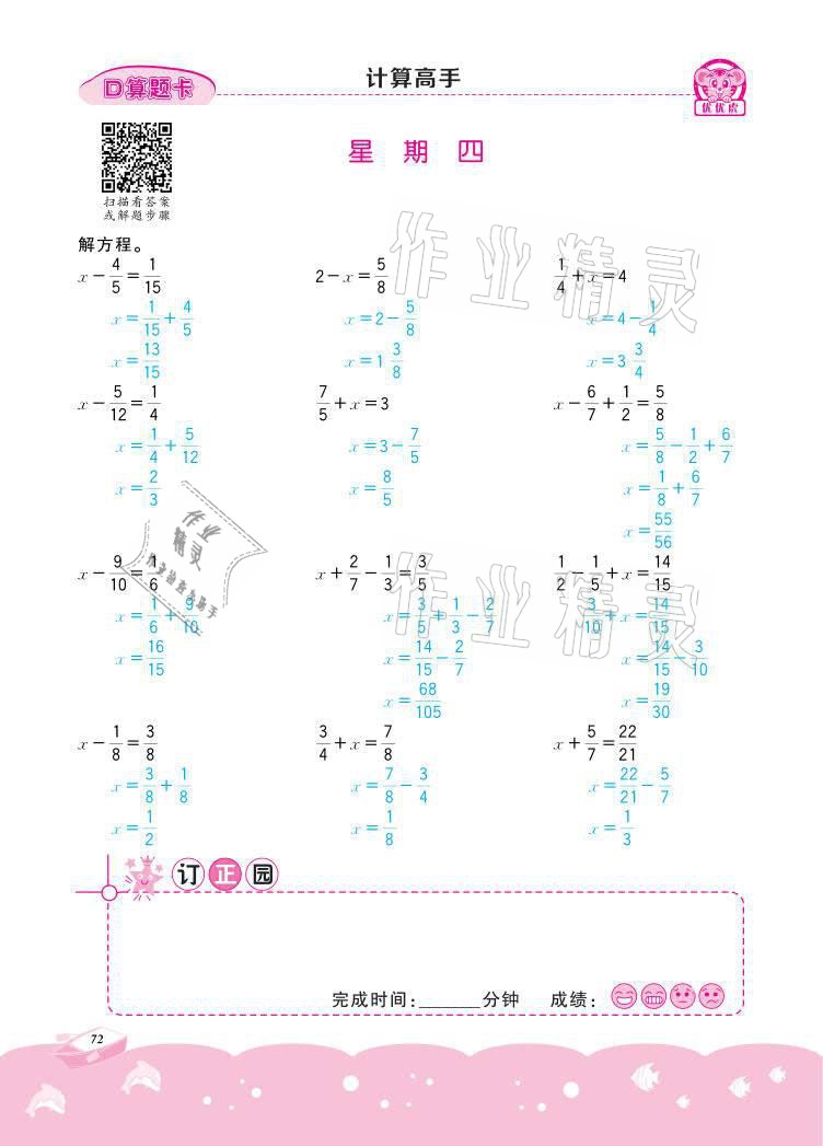 注:目前有些书本章节名称可能整理的还不是很完善,但都是按照顺序排列的,请同学们按照顺序仔细查找。练习册 2021年小学数学计算高手五年级下册冀教版北京联合出版公司 答案主要是用来给同学们做完题方便对答案用的,请勿直接抄袭。