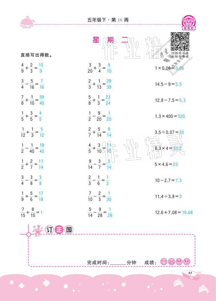 注:目前有些书本章节名称可能整理的还不是很完善,但都是按照顺序排列的,请同学们按照顺序仔细查找。练习册 2021年小学数学计算高手五年级下册冀教版北京联合出版公司 答案主要是用来给同学们做完题方便对答案用的,请勿直接抄袭。