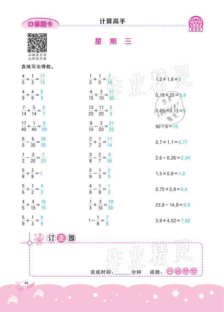 注:目前有些书本章节名称可能整理的还不是很完善,但都是按照顺序排列的,请同学们按照顺序仔细查找。练习册 2021年小学数学计算高手五年级下册冀教版北京联合出版公司 答案主要是用来给同学们做完题方便对答案用的,请勿直接抄袭。