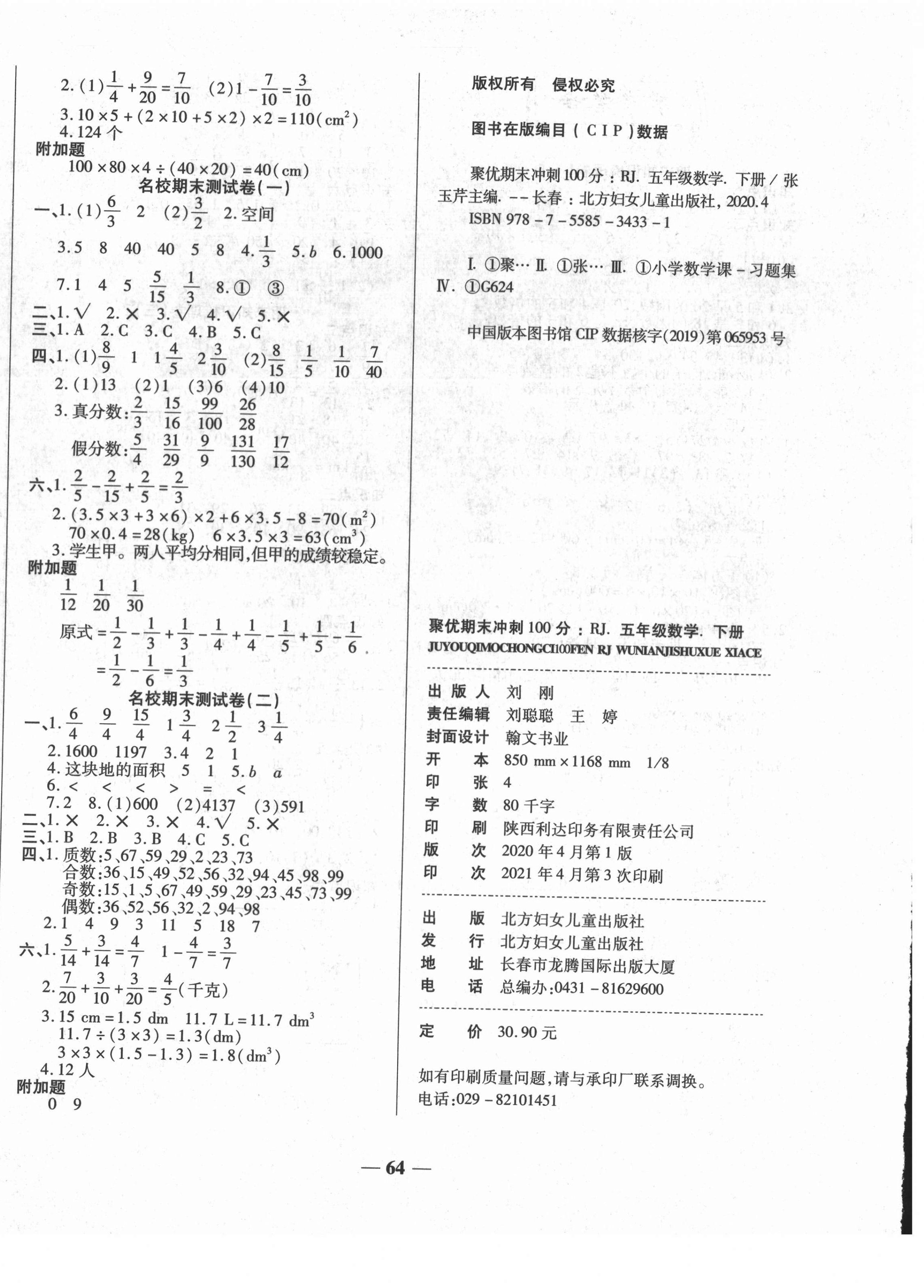 2021年聚优期末冲刺100分五年级数学下册人教版