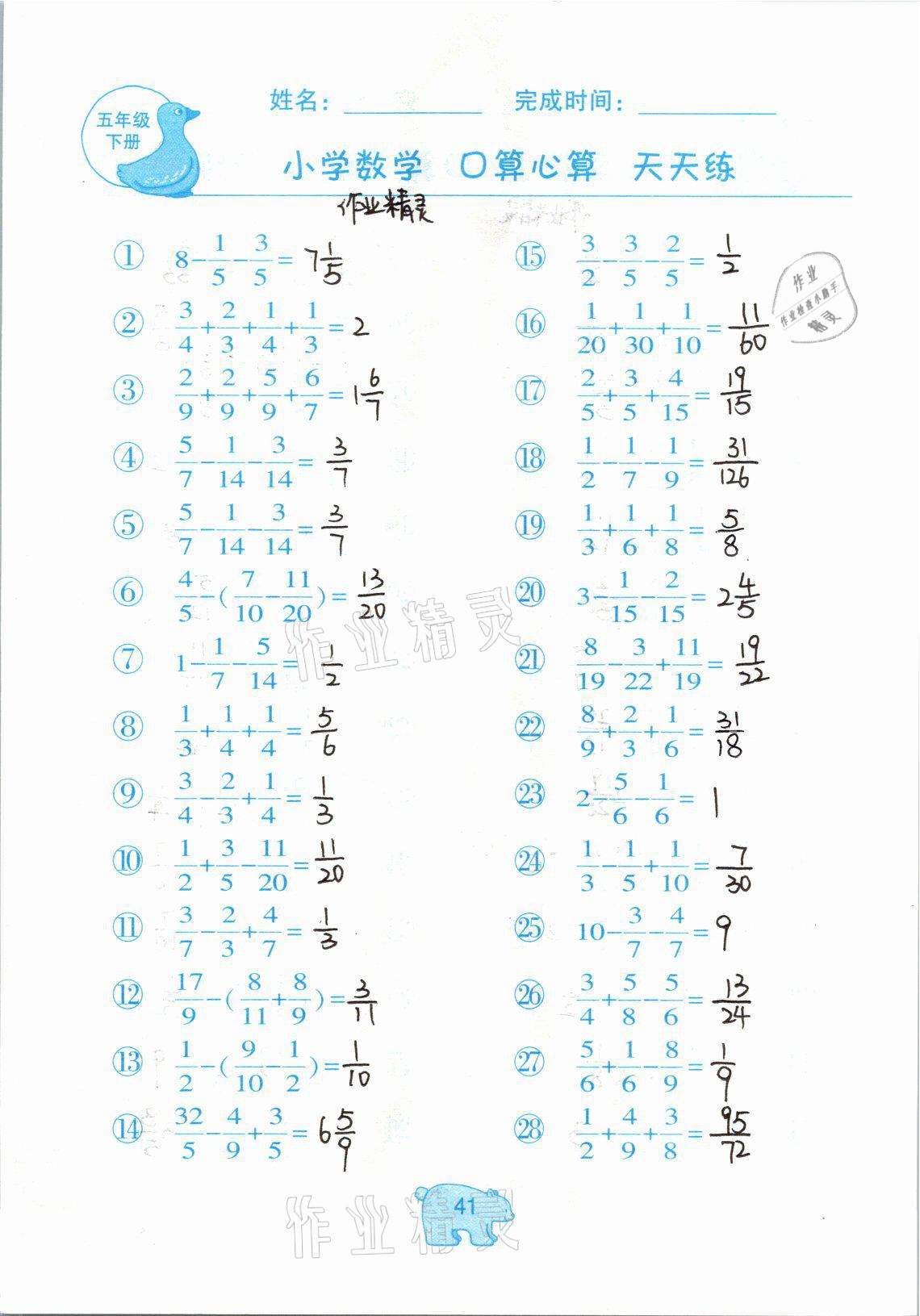 注:目前有些书本章节名称可能整理的还不是很完善,但都是按照顺序排列的,请同学们按照顺序仔细查找。练习册 2021年文墨小学数学口算心算天天练五年级下册冀教版 答案主要是用来给同学们做完题方便对答案用的,请勿直接抄袭。