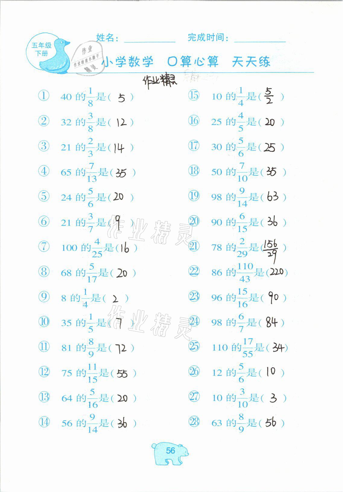 注:目前有些书本章节名称可能整理的还不是很完善,但都是按照顺序排列的,请同学们按照顺序仔细查找。练习册 2021年文墨小学数学口算心算天天练五年级下册冀教版 答案主要是用来给同学们做完题方便对答案用的,请勿直接抄袭。
