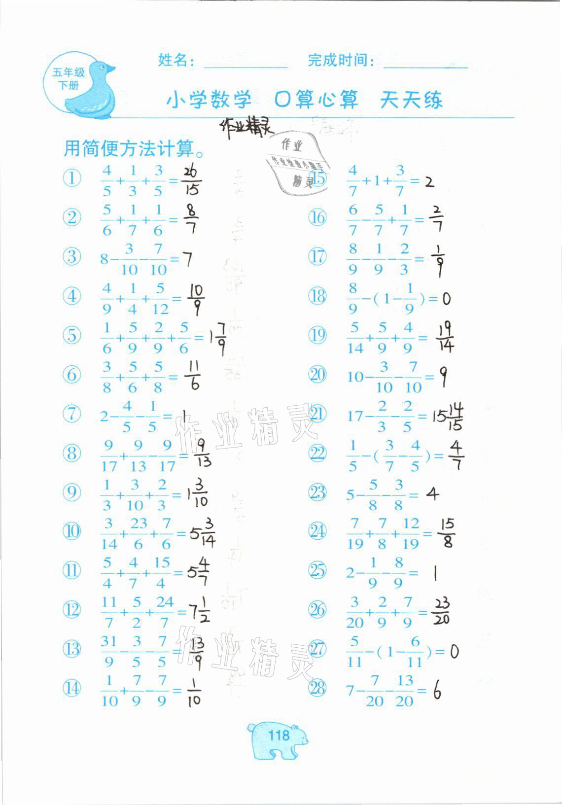 注:目前有些书本章节名称可能整理的还不是很完善,但都是按照顺序排列的,请同学们按照顺序仔细查找。练习册 2021年文墨小学数学口算心算天天练五年级下册冀教版 答案主要是用来给同学们做完题方便对答案用的,请勿直接抄袭。