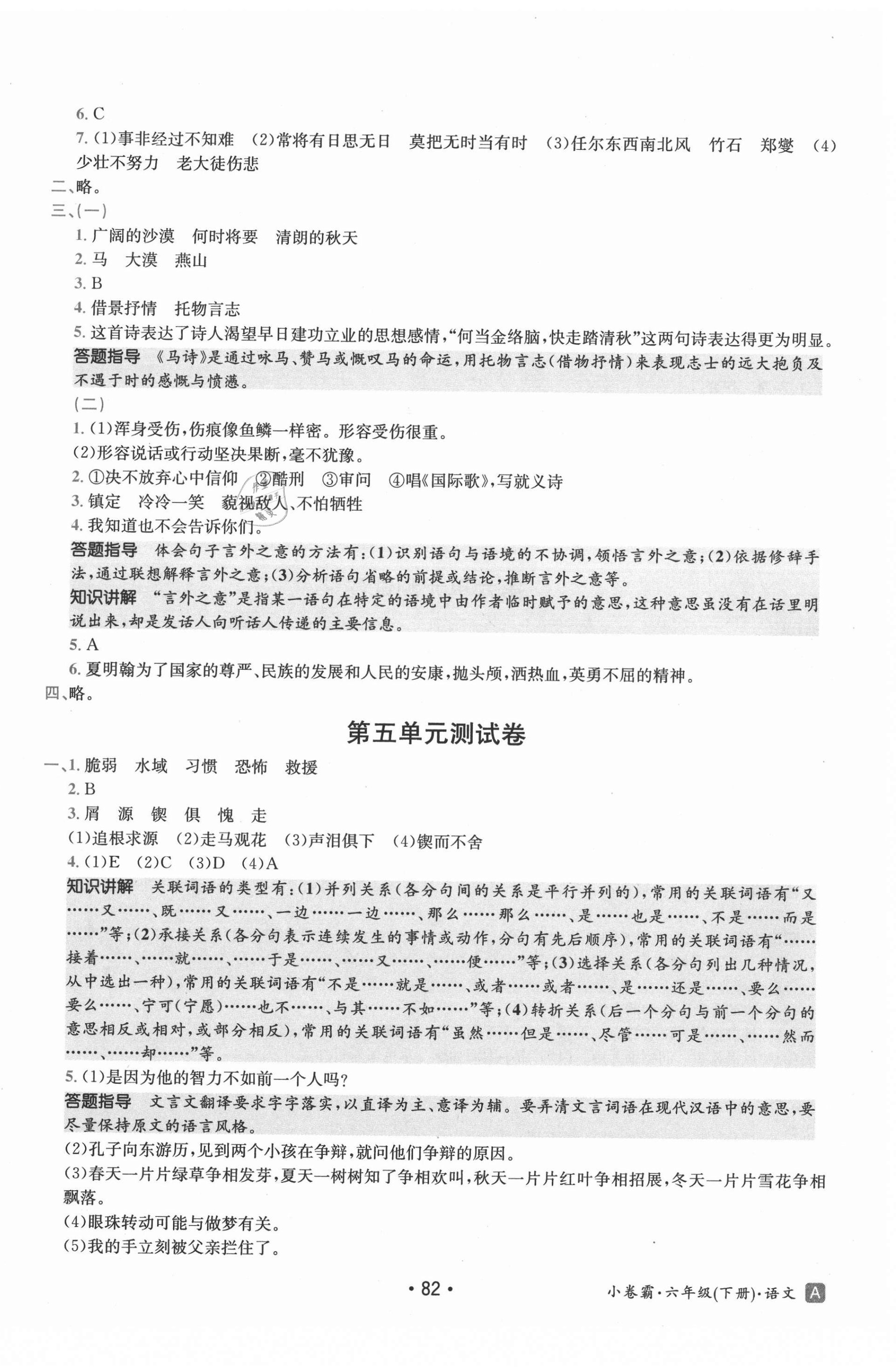 注:目前有些书本章节名称可能整理的还不是很完善,但都是按照顺序排列的,请同学们按照顺序仔细查找。练习册 2021年小卷霸六年级语文下册人教版 答案主要是用来给同学们做完题方便对答案用的,请勿直接抄袭。
