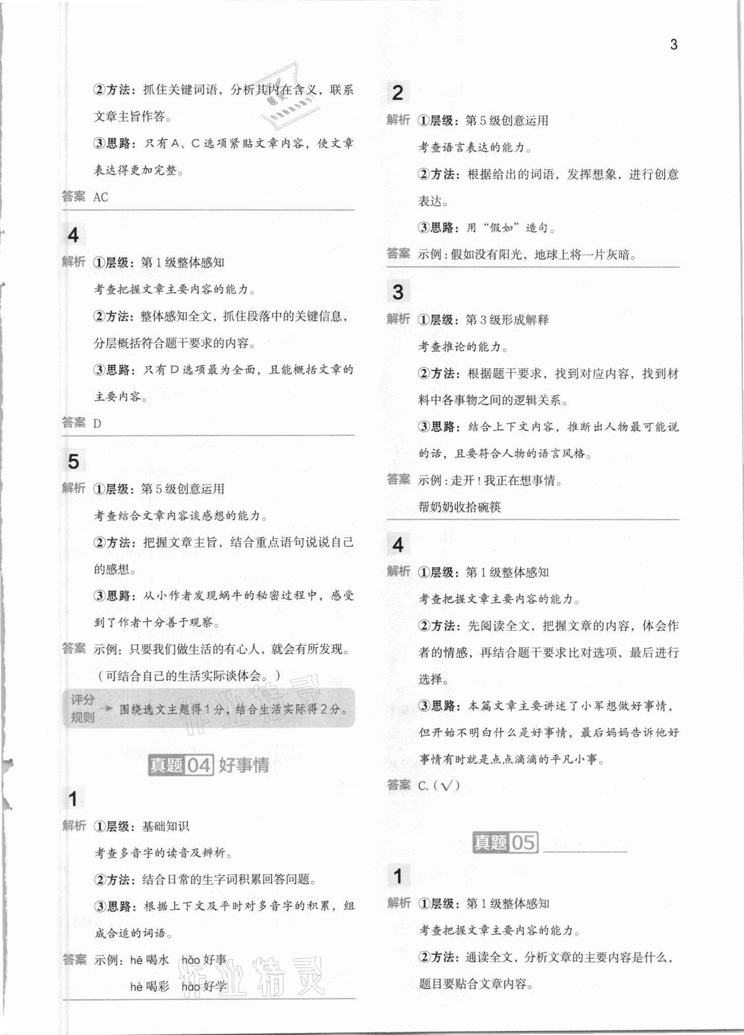 注:目前有些书本章节名称可能整理的还不是很完善,但都是按照顺序排列的,请同学们按照顺序仔细查找。练习册 2021年阅读大脑真题集训80篇三年级下册人教版 答案主要是用来给同学们做完题方便对答案用的,请勿直接抄袭。