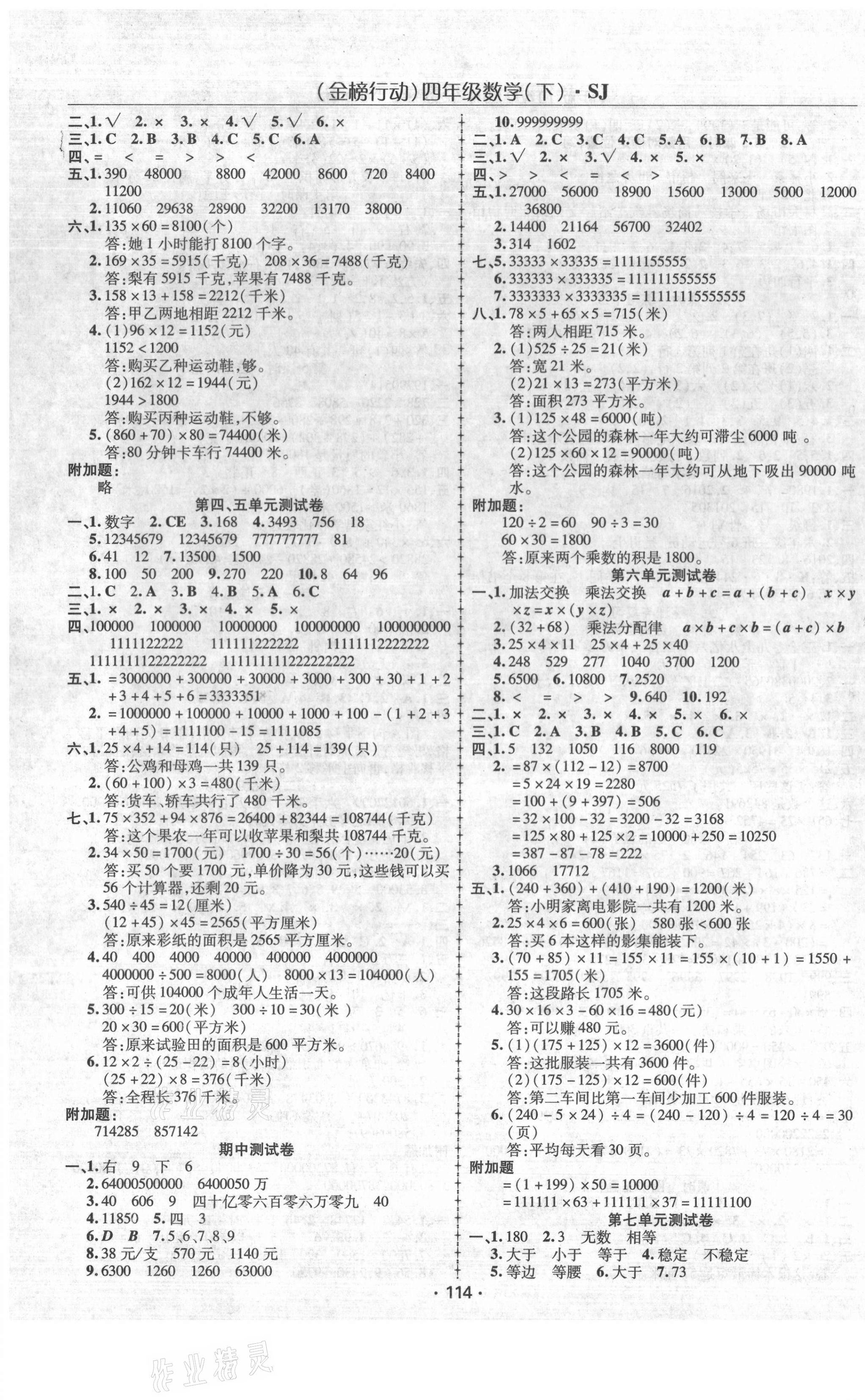 注:目前有些书本章节名称可能整理的还不是很完善,但都是按照顺序排列的,请同学们按照顺序仔细查找。练习册 2021年金榜行动四年级数学下册苏教版新疆文化出版社 答案主要是用来给同学们做完题方便对答案用的,请勿直接抄袭。