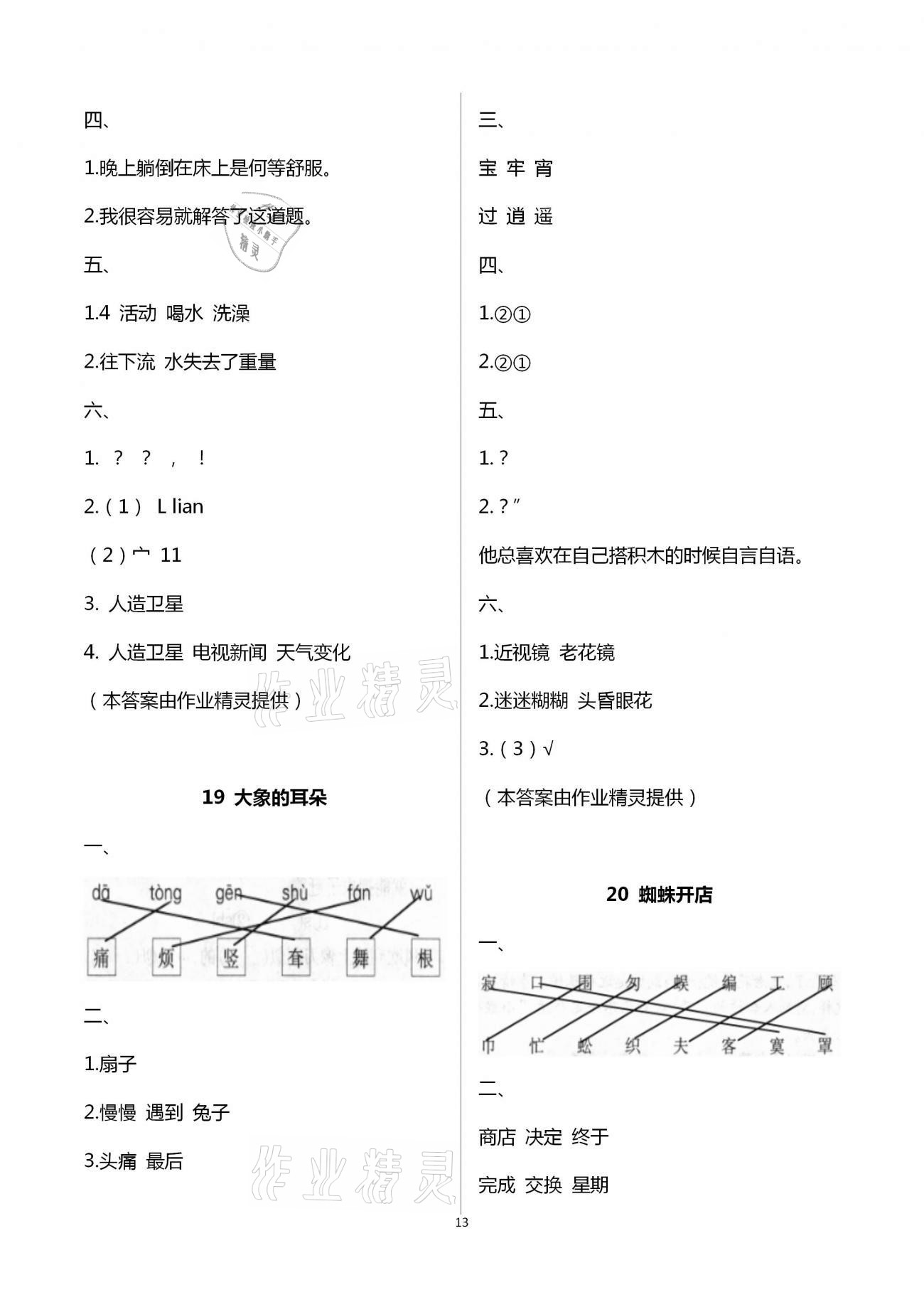 注:目前有些书本章节名称可能整理的还不是很完善,但都是按照顺序排列的,请同学们按照顺序仔细查找。练习册 2021年课堂练习册二年级语文下册人教版A版 答案主要是用来给同学们做完题方便对答案用的,请勿直接抄袭。