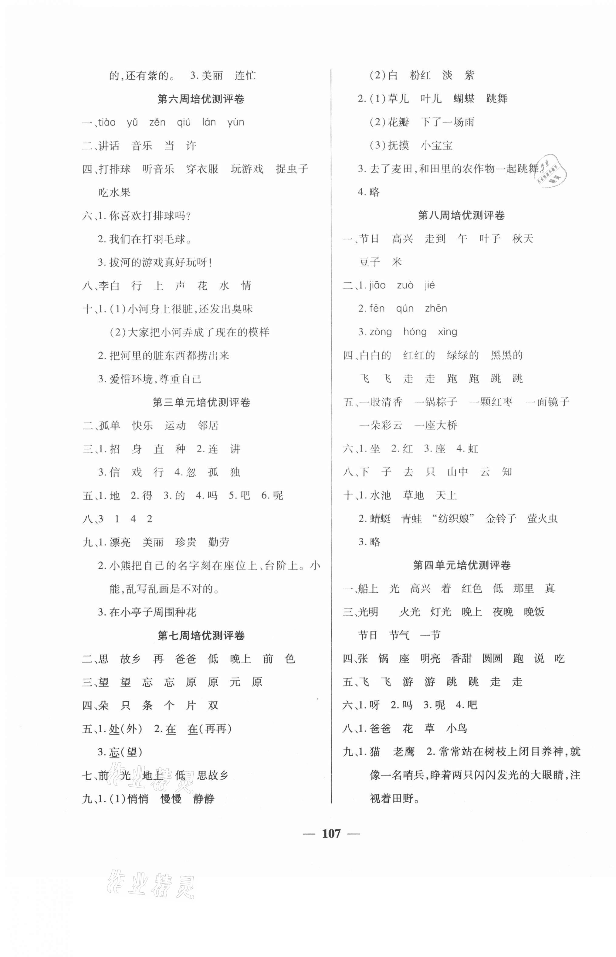 注:目前有些书本章节名称可能整理的还不是很完善,但都是按照顺序排列的,请同学们按照顺序仔细查找。练习册 2021年培优名卷一年级语文下册人教版A版 答案主要是用来给同学们做完题方便对答案用的,请勿直接抄袭。