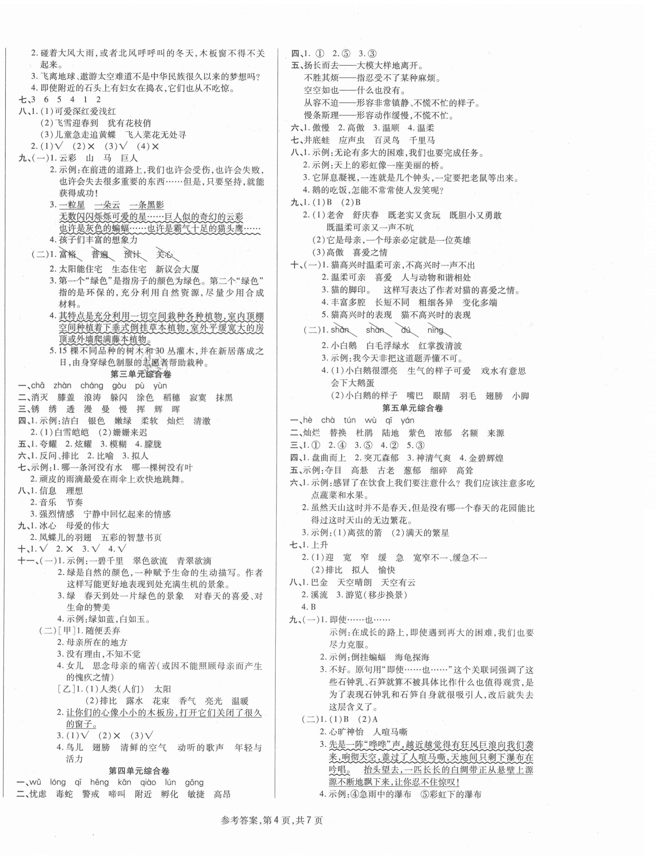 注:目前有些书本章节名称可能整理的还不是很完善,但都是按照顺序排列的,请同学们按照顺序仔细查找。练习册 2021年金牌大考卷四年级语文下册人教版 答案主要是用来给同学们做完题方便对答案用的,请勿直接抄袭。