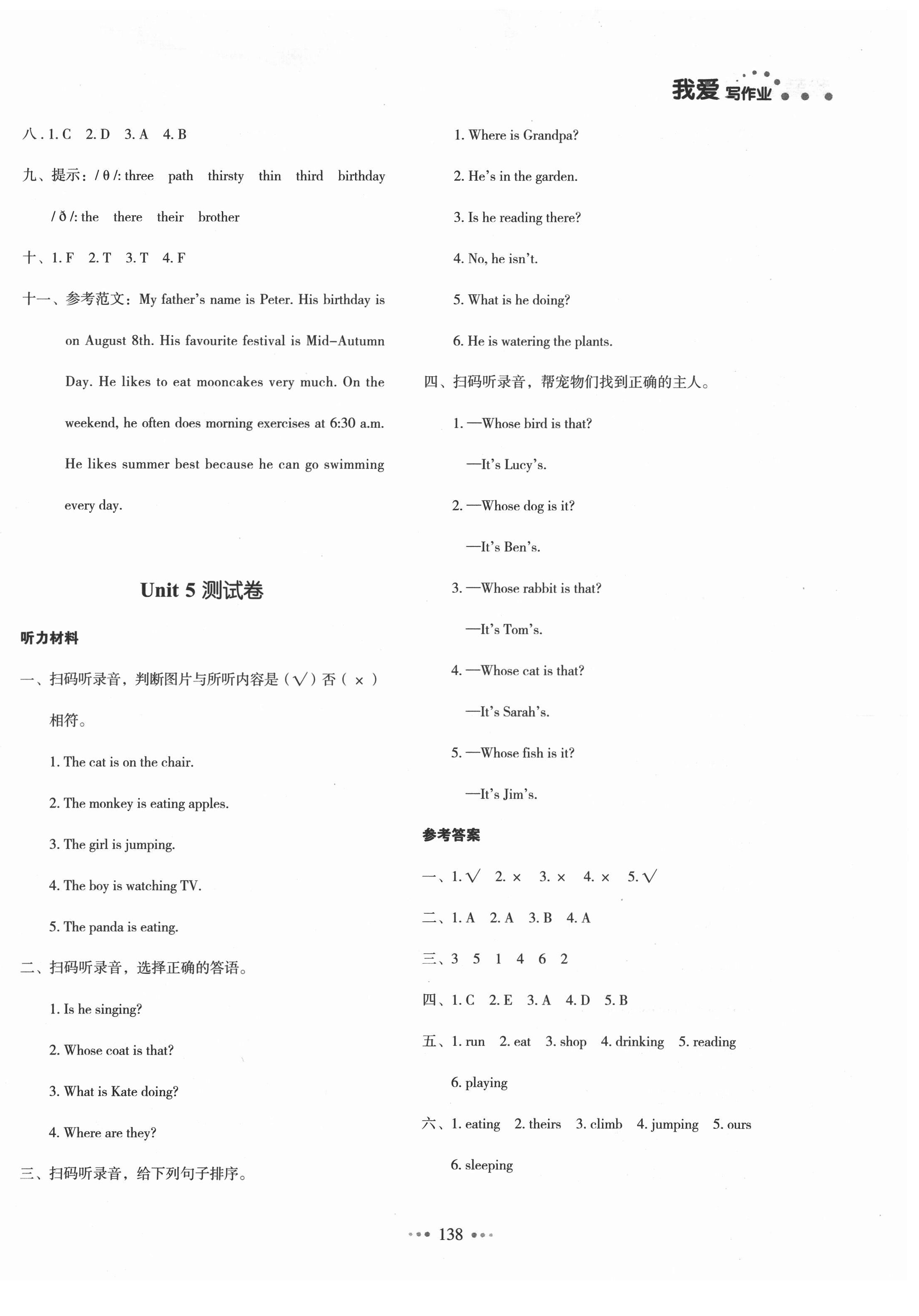 注:目前有些书本章节名称可能整理的还不是很完善,但都是按照顺序排列的,请同学们按照顺序仔细查找。练习册 2021年我爱写作业五年级英语下册人教PEP版 答案主要是用来给同学们做完题方便对答案用的,请勿直接抄袭。