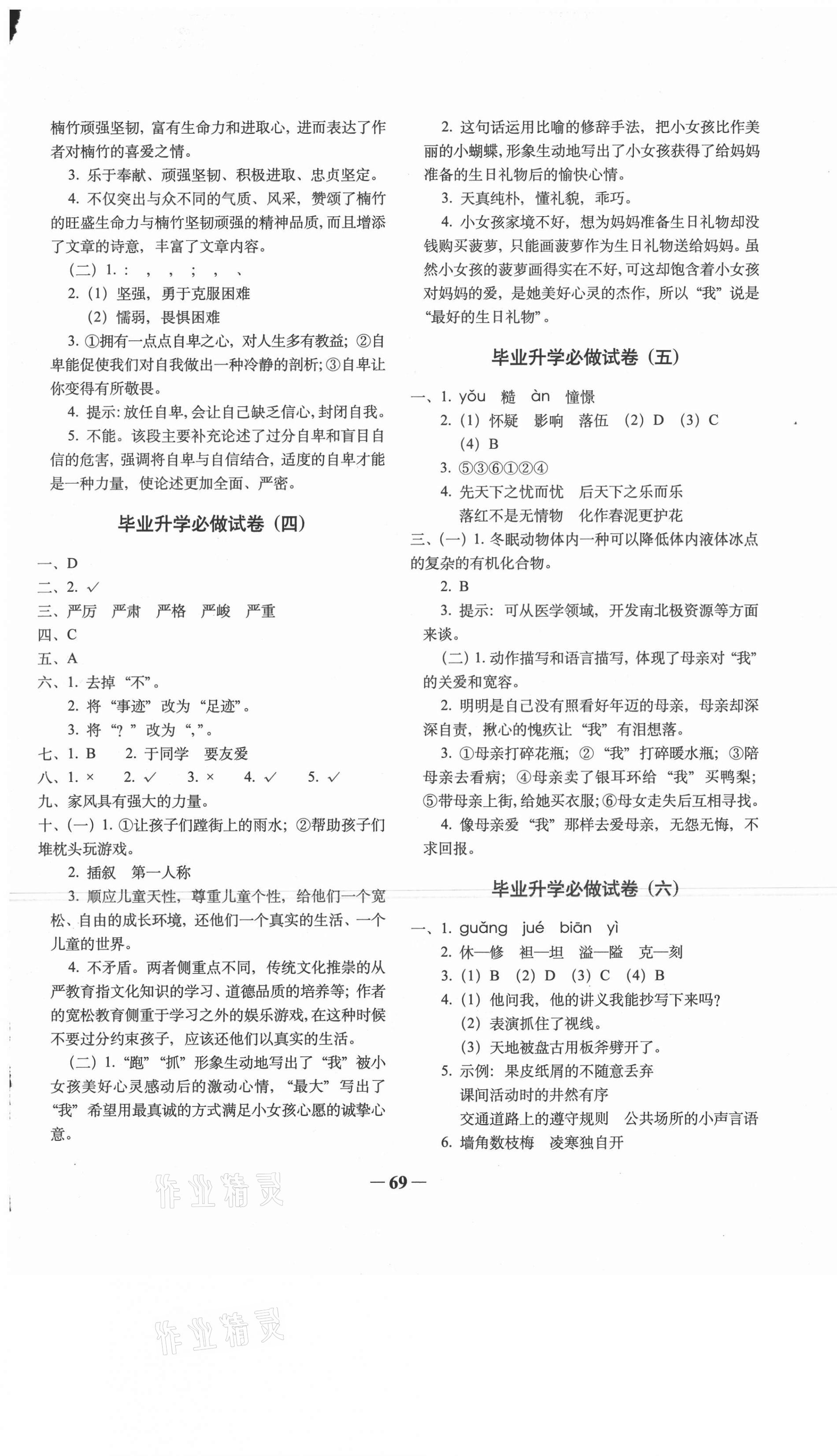注:目前有些书本章节名称可能整理的还不是很完善,但都是按照顺序排列的,请同学们按照顺序仔细查找。练习册 2021年68所名校图书小学毕业升学必做的16套试卷语文 答案主要是用来给同学们做完题方便对答案用的,请勿直接抄袭。