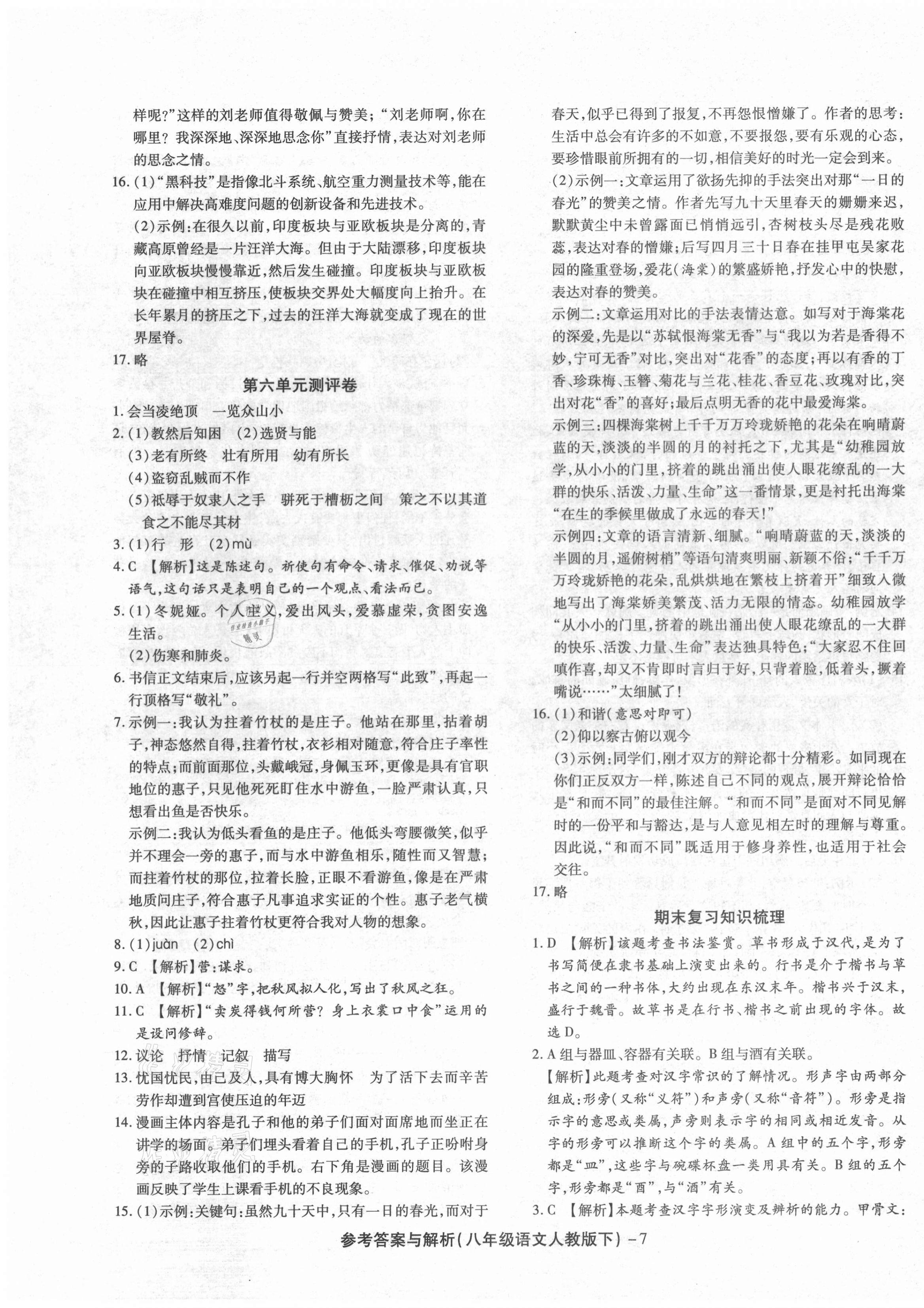 注:目前有些书本章节名称可能整理的还不是很完善,但都是按照顺序排列的,请同学们按照顺序仔细查找。练习册 2021年练考通全优卷八年级语文下册人教版山西专版 答案主要是用来给同学们做完题方便对答案用的,请勿直接抄袭。