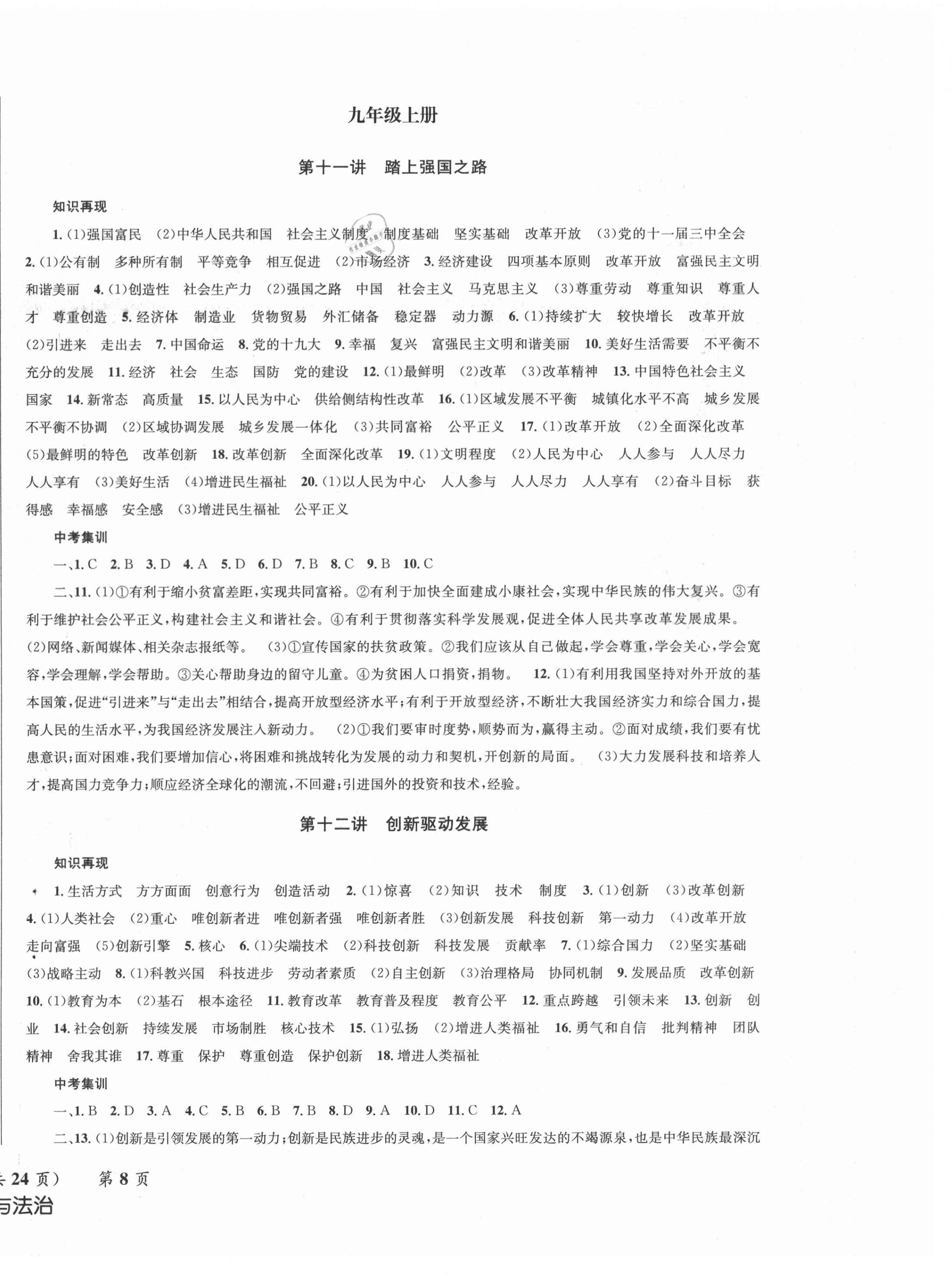 注:目前有些书本章节名称可能整理的还不是很完善,但都是按照顺序排列的,请同学们按照顺序仔细查找。练习册 2021年成功中考系统总复习道德与法治 答案主要是用来给同学们做完题方便对答案用的,请勿直接抄袭。