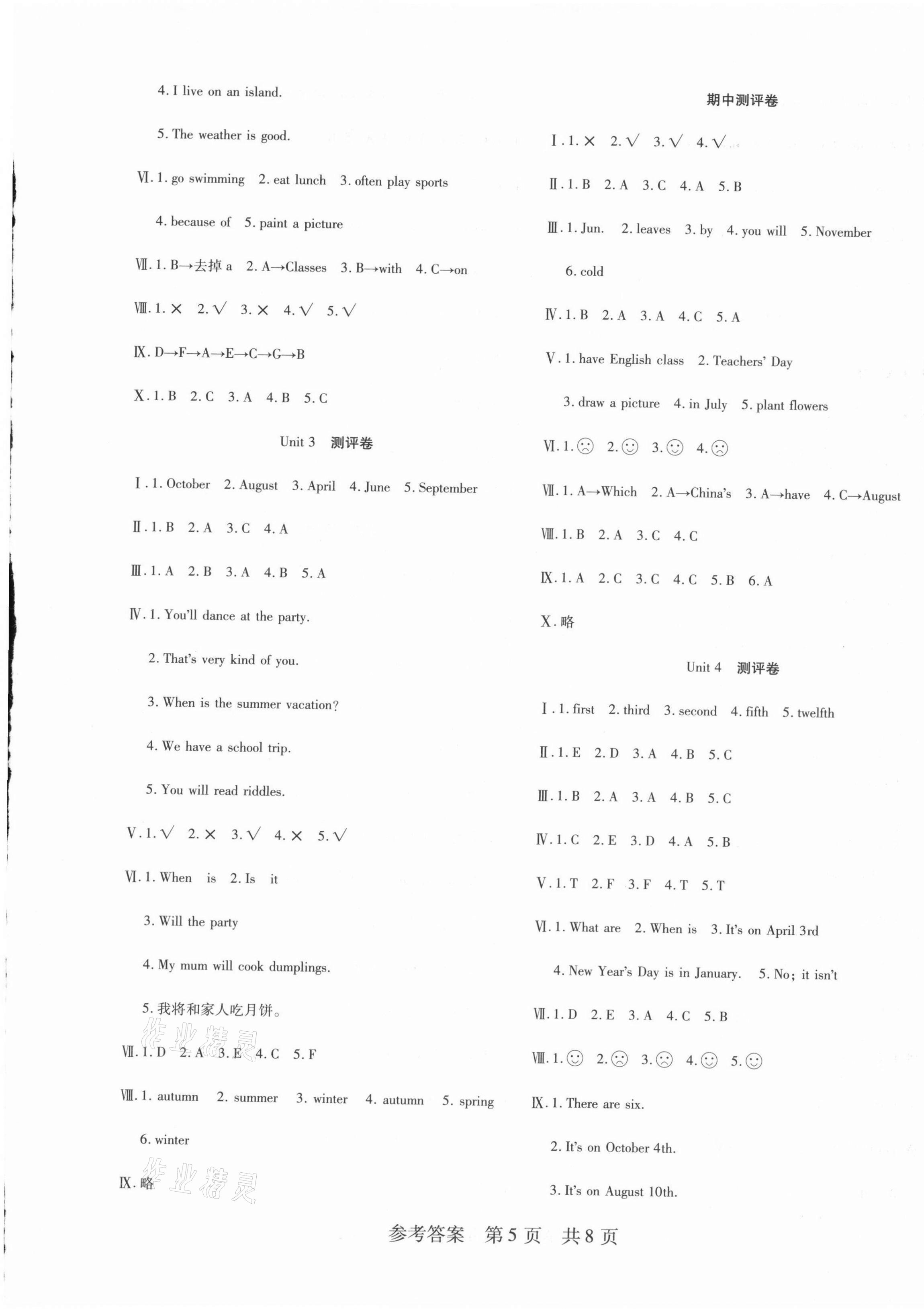 注:目前有些书本章节名称可能整理的还不是很完善,但都是按照顺序排列的,请同学们按照顺序仔细查找。练习册 2021年一线调研学业测评五年级英语下册人教PEP版 答案主要是用来给同学们做完题方便对答案用的,请勿直接抄袭。