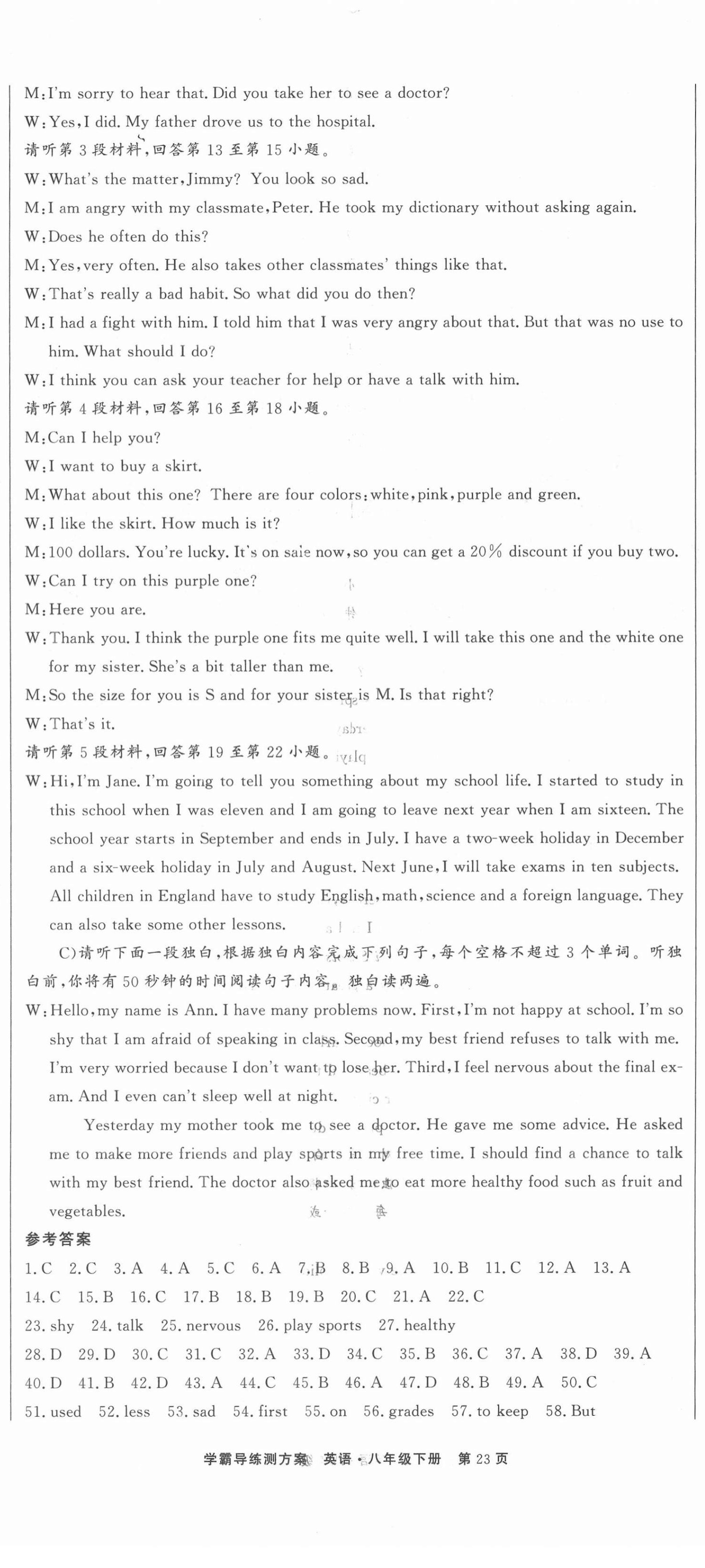 注:目前有些书本章节名称可能整理的还不是很完善,但都是按照顺序排列的,请同学们按照顺序仔细查找。练习册 2021年学霸导练测方案八年级英语下册人教版江西专版 答案主要是用来给同学们做完题方便对答案用的,请勿直接抄袭。