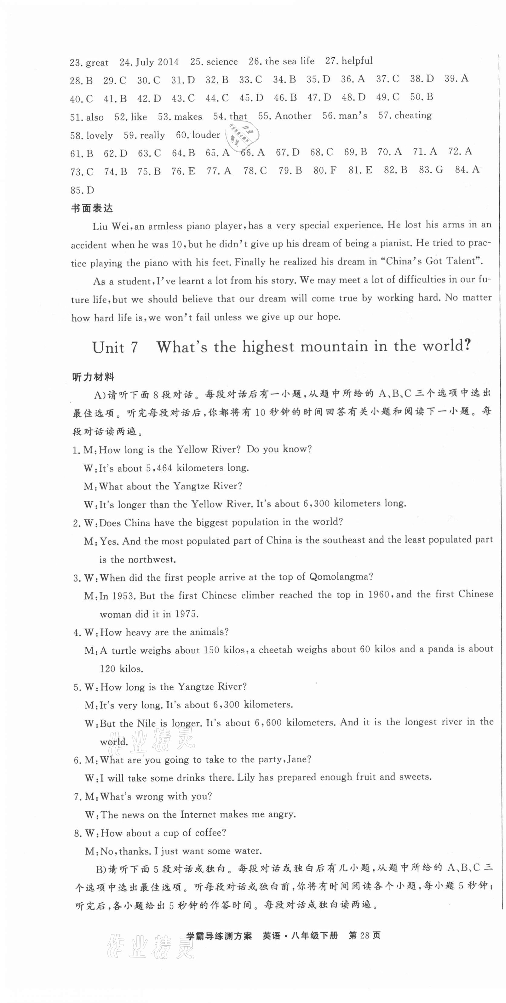 注:目前有些书本章节名称可能整理的还不是很完善,但都是按照顺序排列的,请同学们按照顺序仔细查找。练习册 2021年学霸导练测方案八年级英语下册人教版江西专版 答案主要是用来给同学们做完题方便对答案用的,请勿直接抄袭。