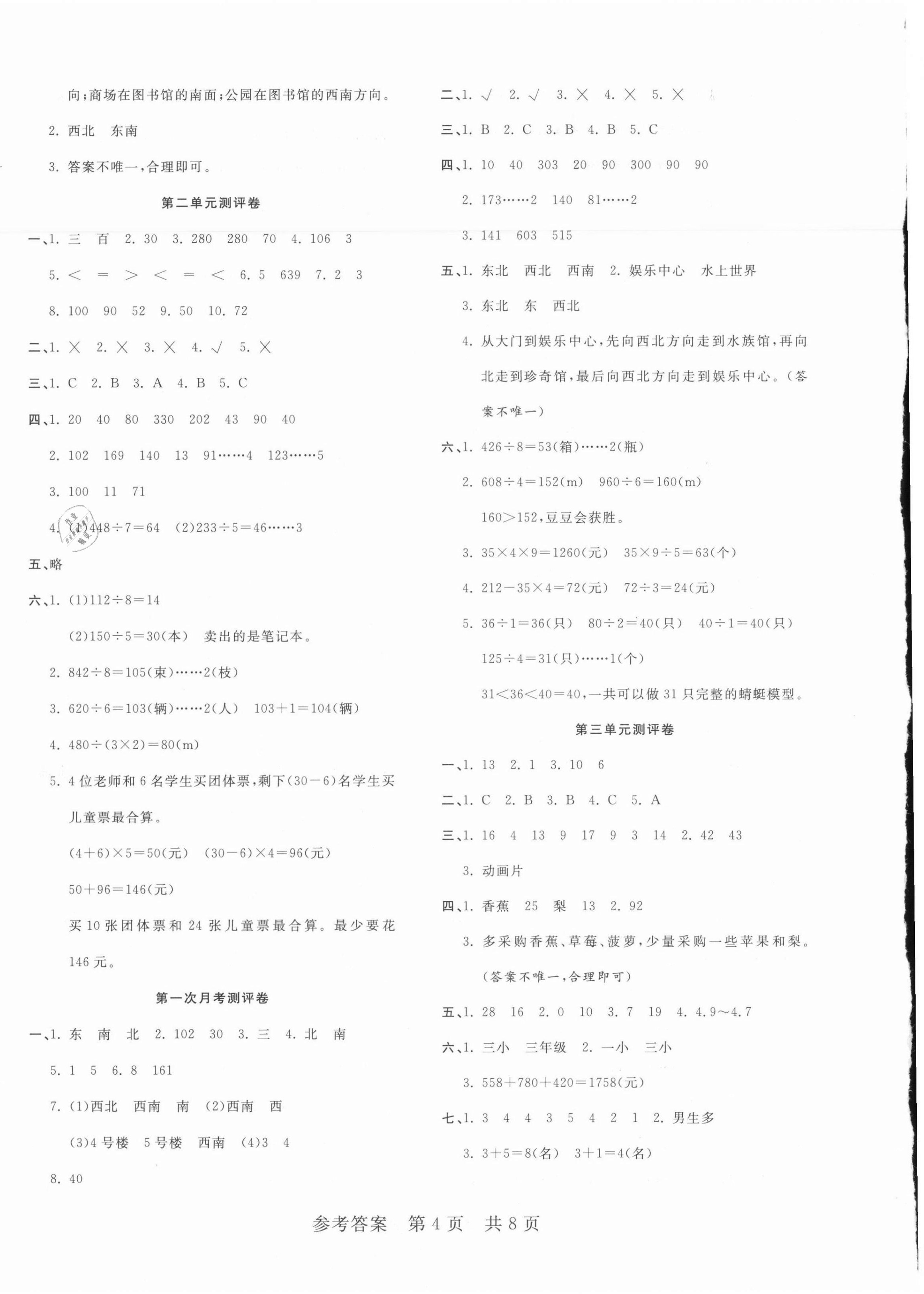 注:目前有些书本章节名称可能整理的还不是很完善,但都是按照顺序排列的,请同学们按照顺序仔细查找。练习册 2021年一线调研学业测评三年级数学下册人教版 答案主要是用来给同学们做完题方便对答案用的,请勿直接抄袭。