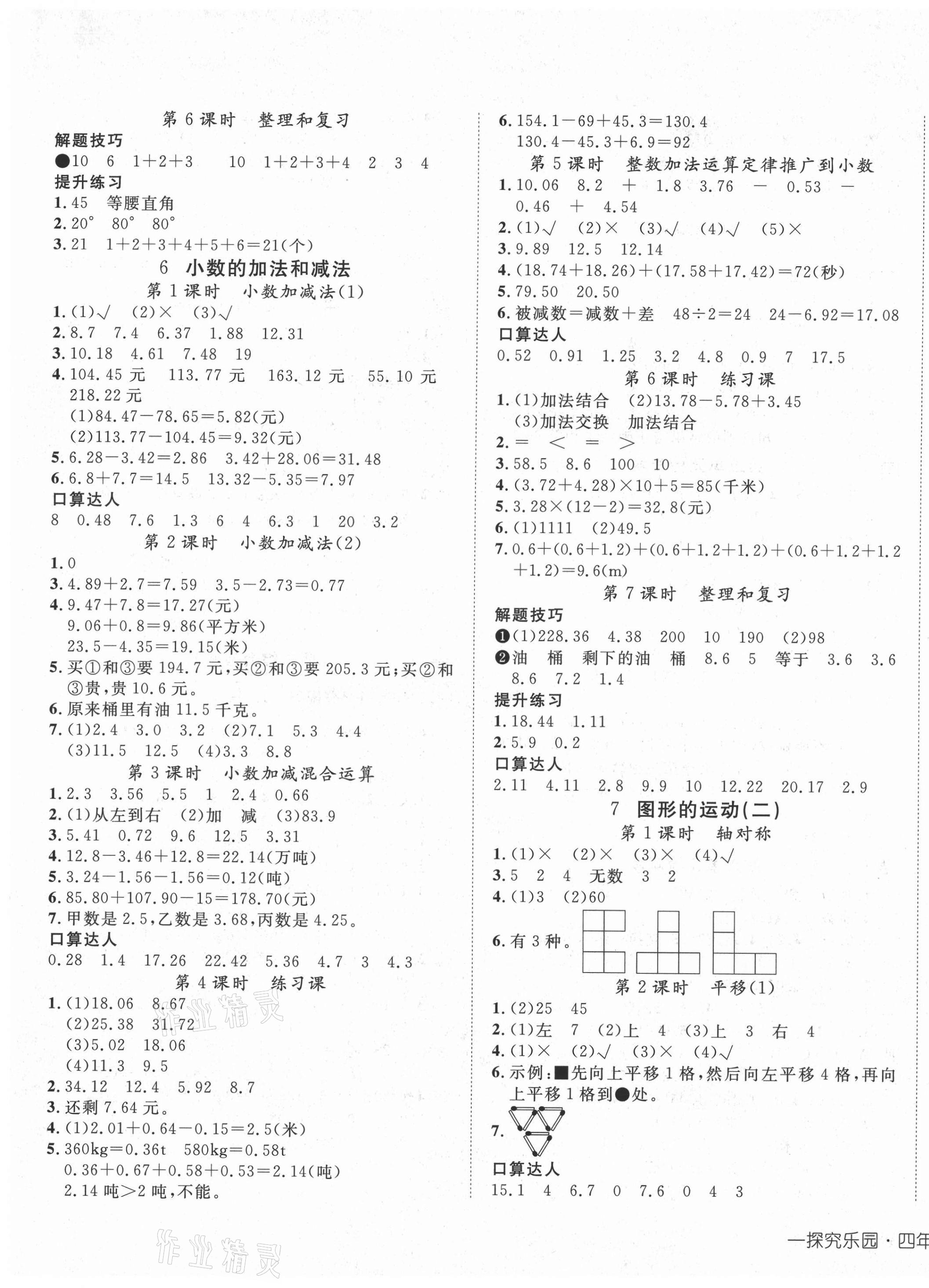 注:目前有些书本章节名称可能整理的还不是很完善,但都是按照顺序排列的,请同学们按照顺序仔细查找。练习册 2021年探究乐园高效课堂四年级数学下册人教版 答案主要是用来给同学们做完题方便对答案用的,请勿直接抄袭。