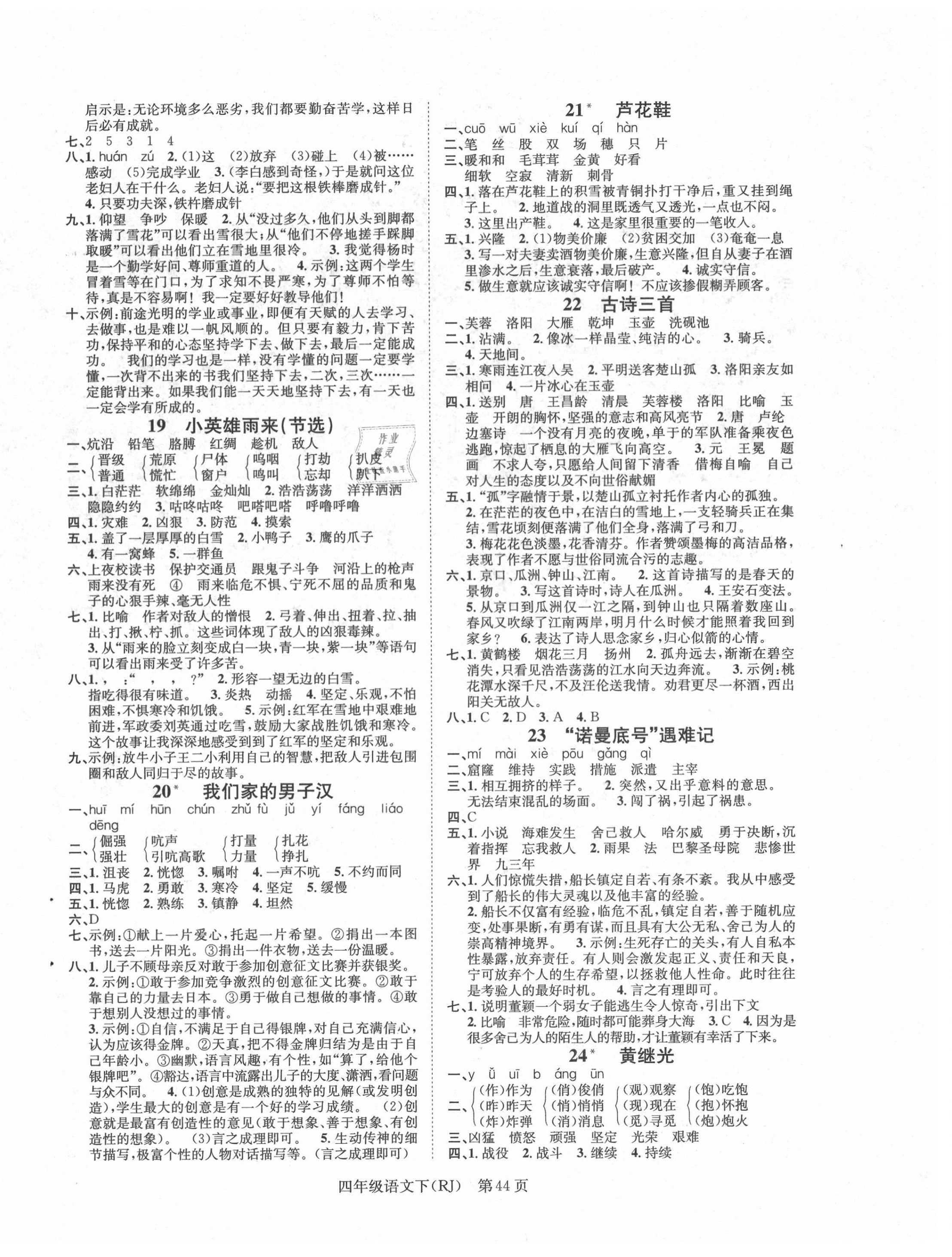 注:目前有些书本章节名称可能整理的还不是很完善,但都是按照顺序排列的,请同学们按照顺序仔细查找。练习册 2021年国华图书学业测评四年级语文下册人教版 答案主要是用来给同学们做完题方便对答案用的,请勿直接抄袭。