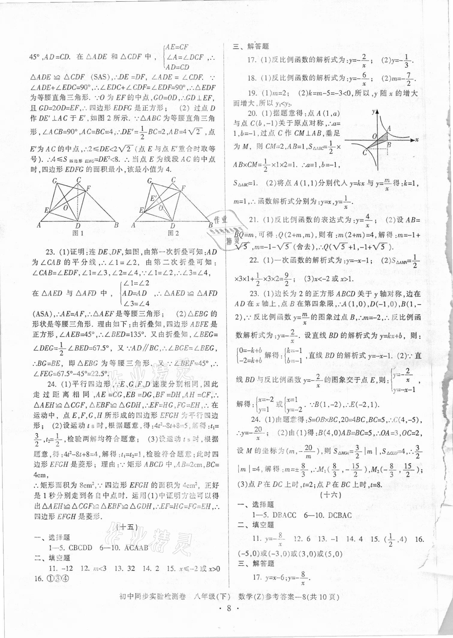 注:目前有些书本章节名称可能整理的还不是很完善,但都是按照顺序排列的,请同学们按照顺序仔细查找。练习册 2021年初中同步实验检测卷八年级数学下册浙教版 答案主要是用来给同学们做完题方便对答案用的,请勿直接抄袭。