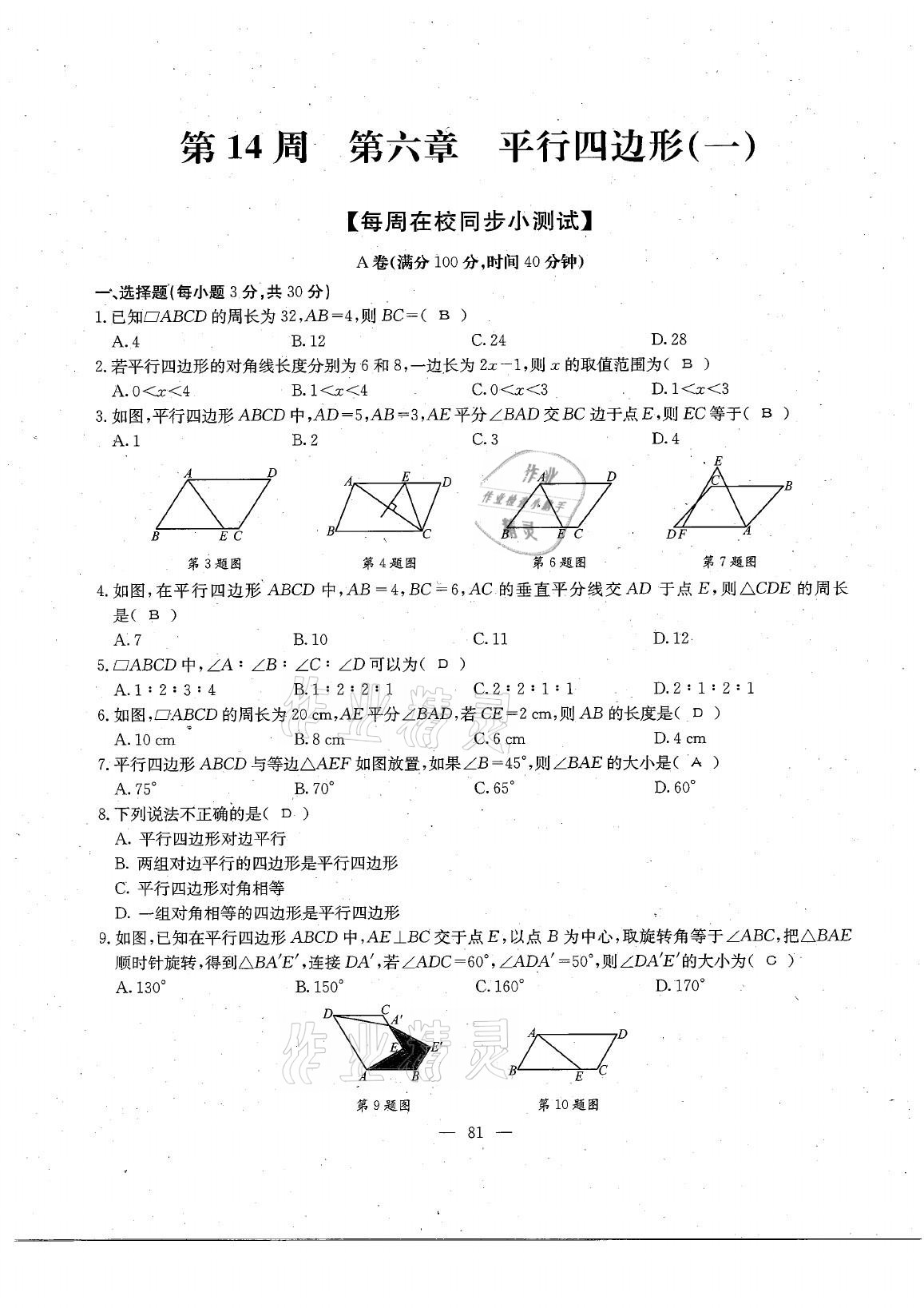注:目前有些书本章节名称可能整理的还不是很完善,但都是按照顺序排列的,请同学们按照顺序仔细查找。练习册 2021年每周过手最佳方案八年级数学下册北师大版 答案主要是用来给同学们做完题方便对答案用的,请勿直接抄袭。