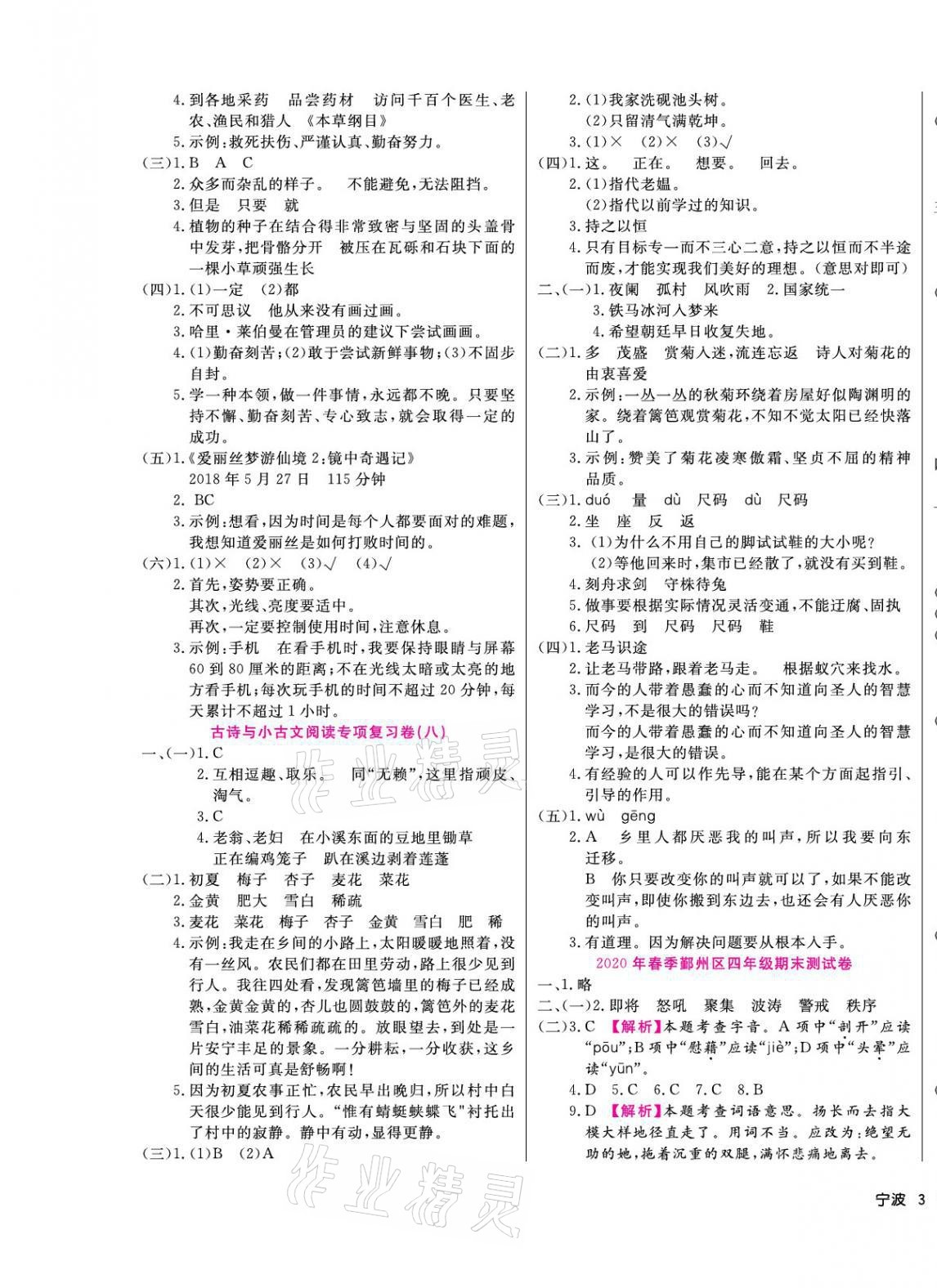 2021年期末真题汇编精选卷四年级语文下册人教版宁波专用