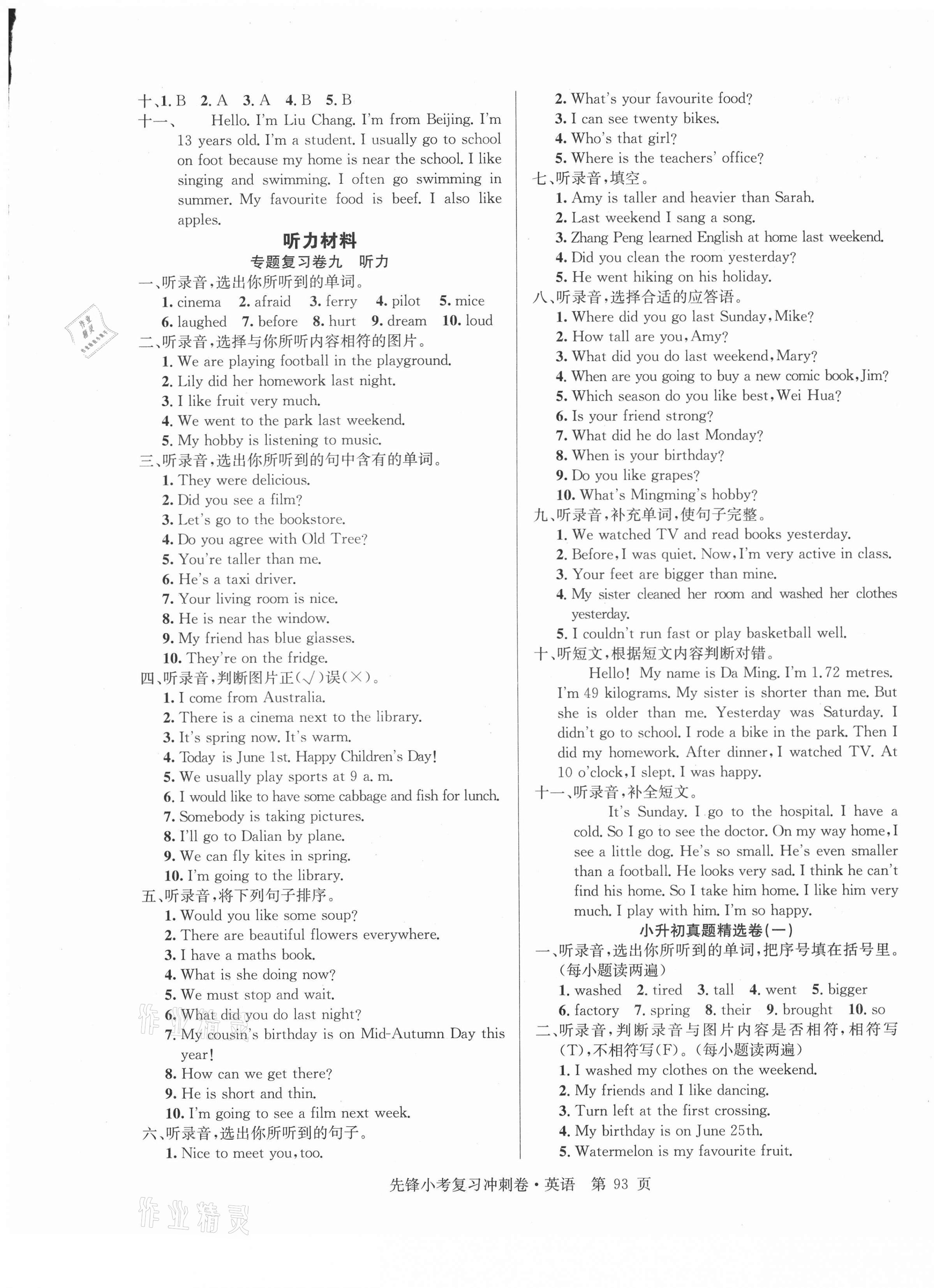 《2021年先锋小考复习冲刺卷英语》