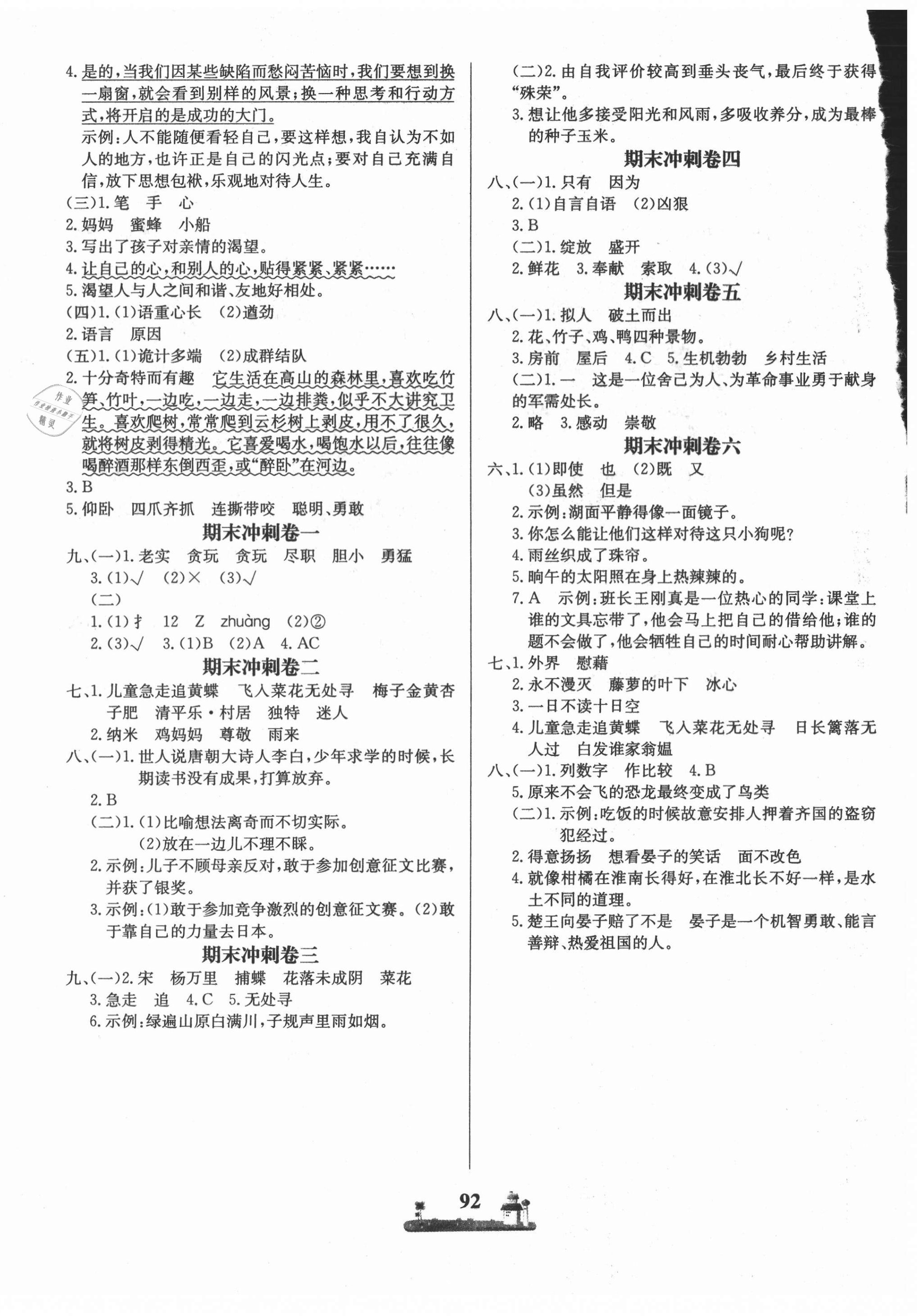 注:目前有些书本章节名称可能整理的还不是很完善,但都是按照顺序排列的,请同学们按照顺序仔细查找。练习册 2021年课时练全优达标测试卷四年级语文下册人教版 答案主要是用来给同学们做完题方便对答案用的,请勿直接抄袭。