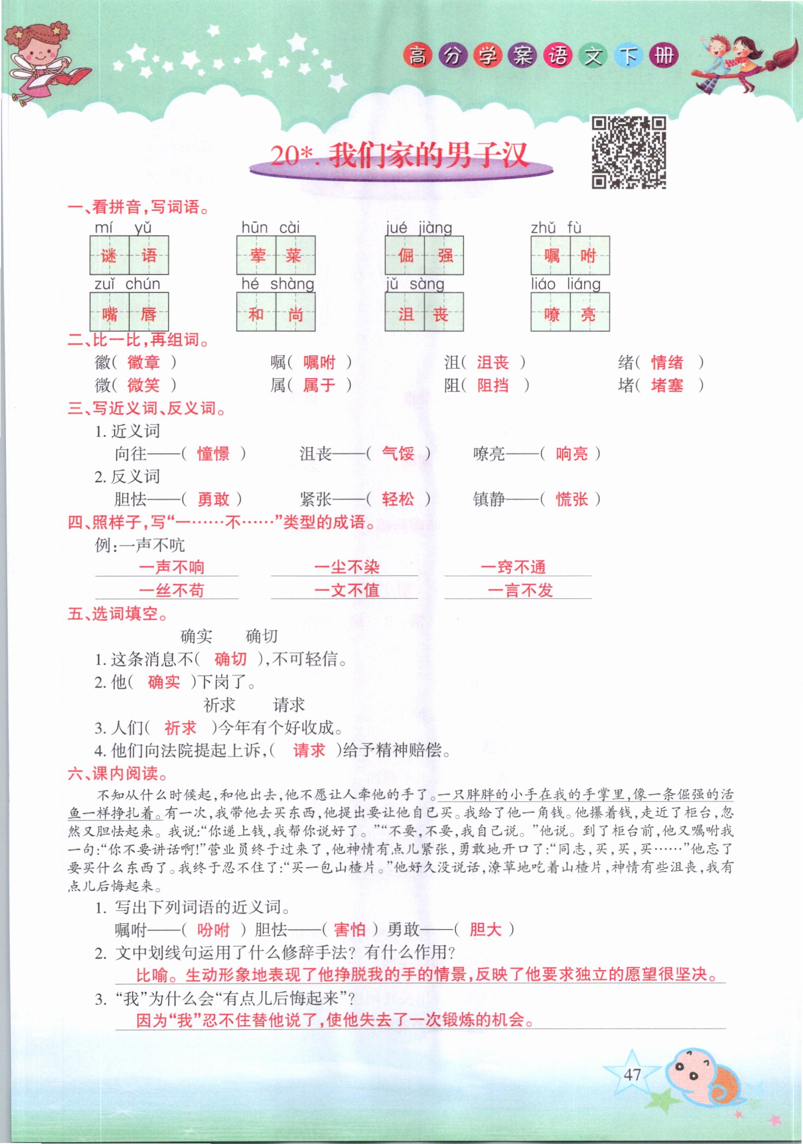 注:目前有些书本章节名称可能整理的还不是很完善,但都是按照顺序排列的,请同学们按照顺序仔细查找。练习册 2021年高分学案赢在新课堂四年级语文下册人教版 答案主要是用来给同学们做完题方便对答案用的,请勿直接抄袭。