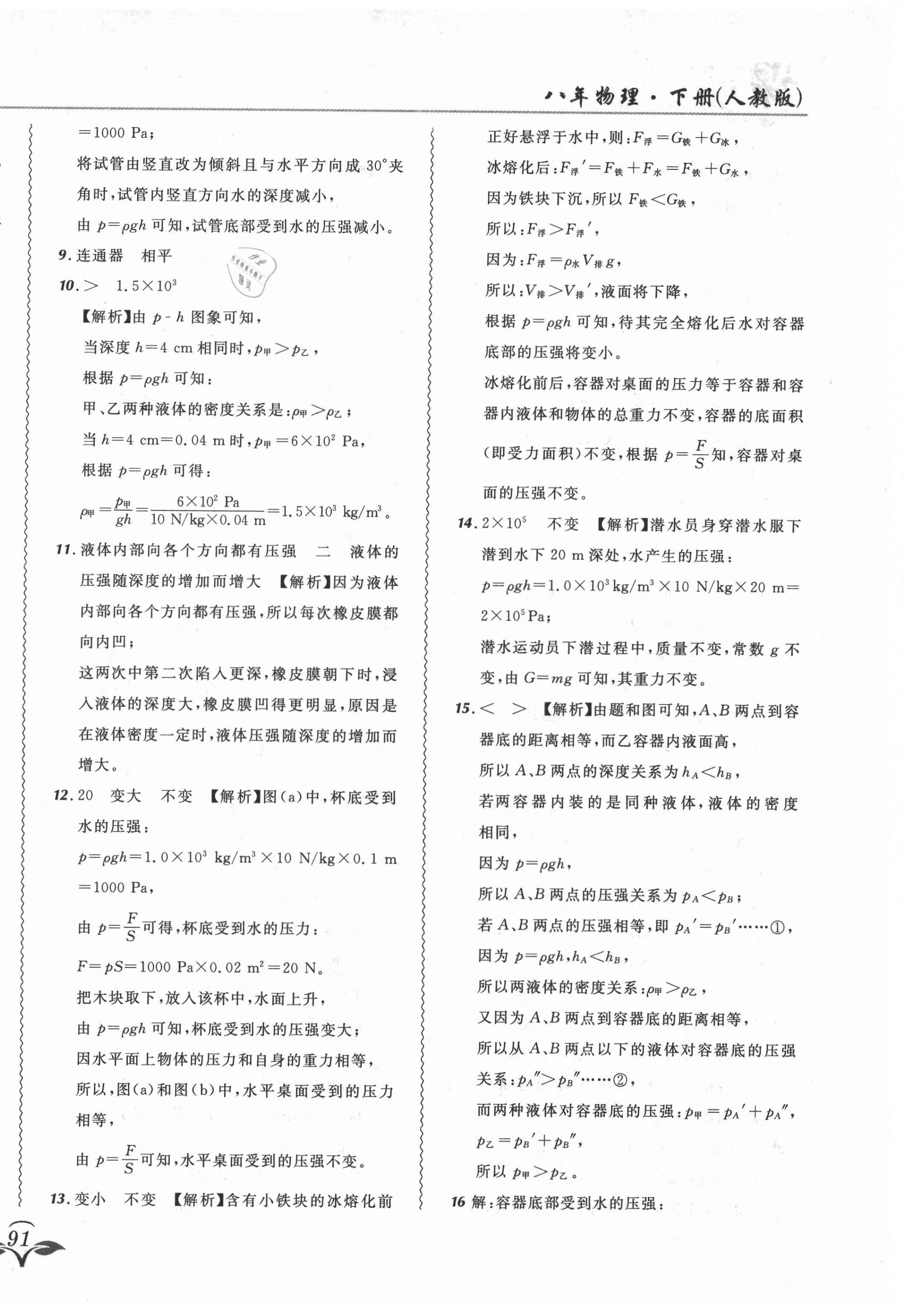 2021年北大绿卡课课大考卷八年级物理下册人教版
