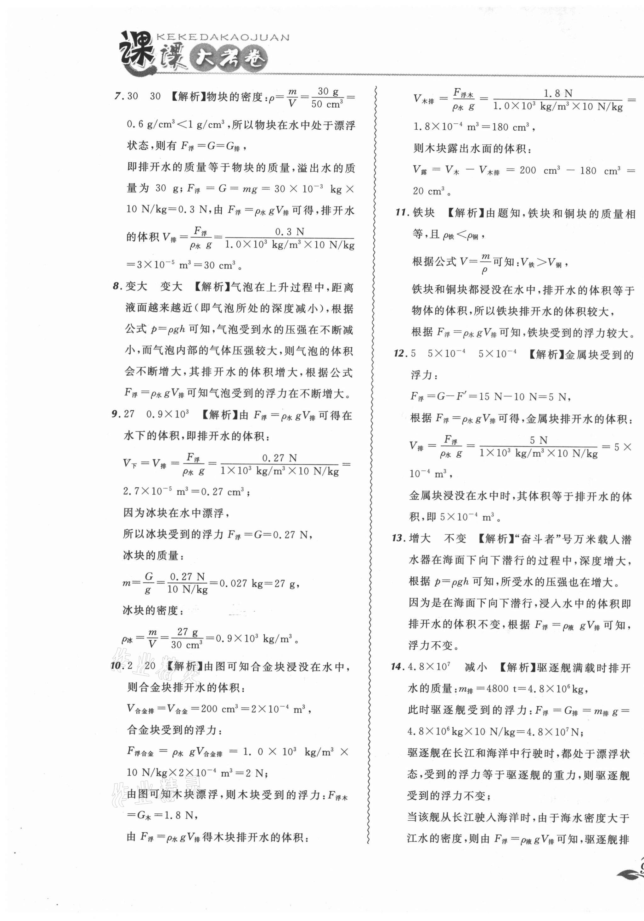注:目前有些书本章节名称可能整理的还不是很完善,但都是按照顺序排列的,请同学们按照顺序仔细查找。练习册 2021年北大绿卡课课大考卷八年级物理下册人教版 答案主要是用来给同学们做完题方便对答案用的,请勿直接抄袭。