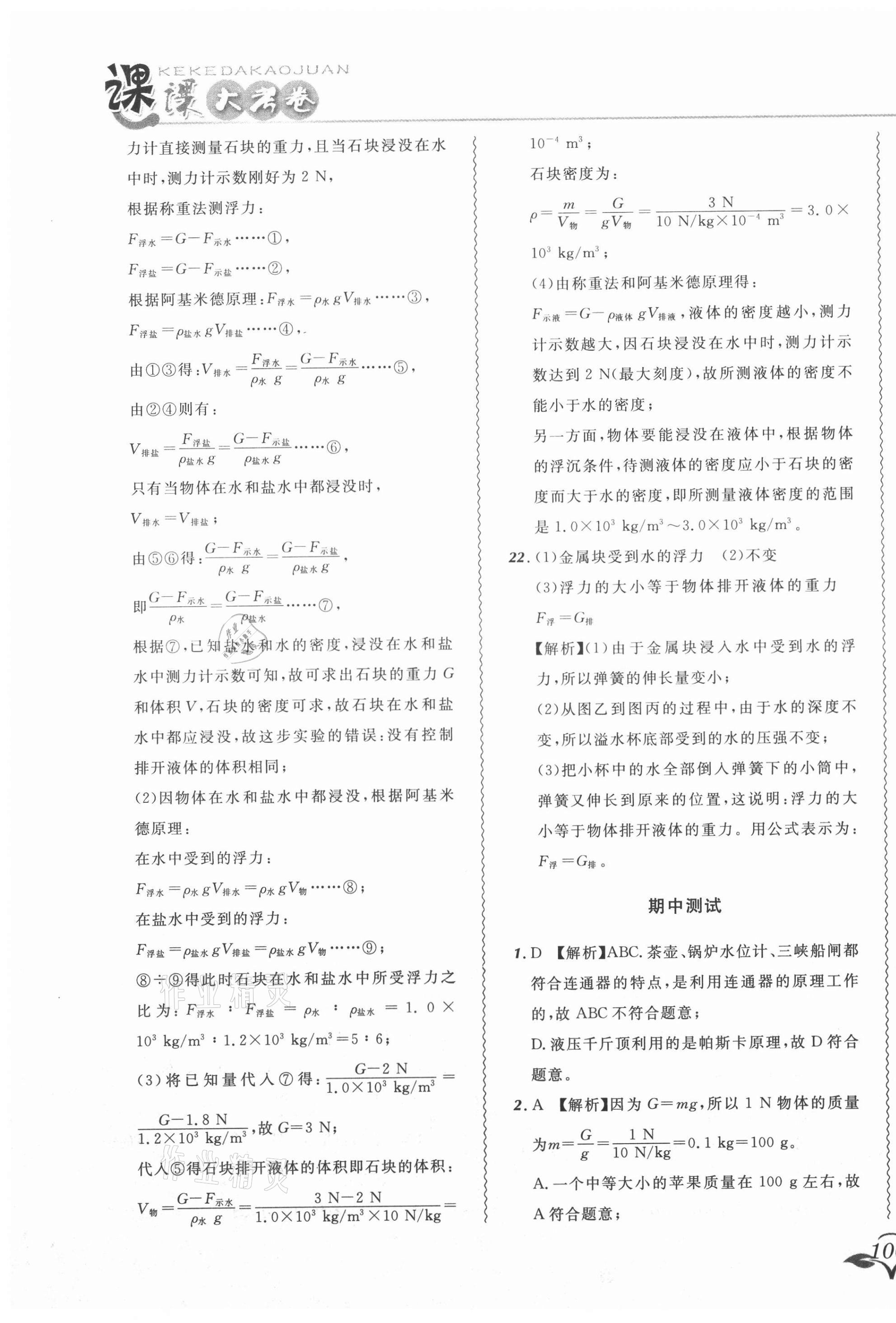 2021年北大绿卡课课大考卷八年级物理下册人教版