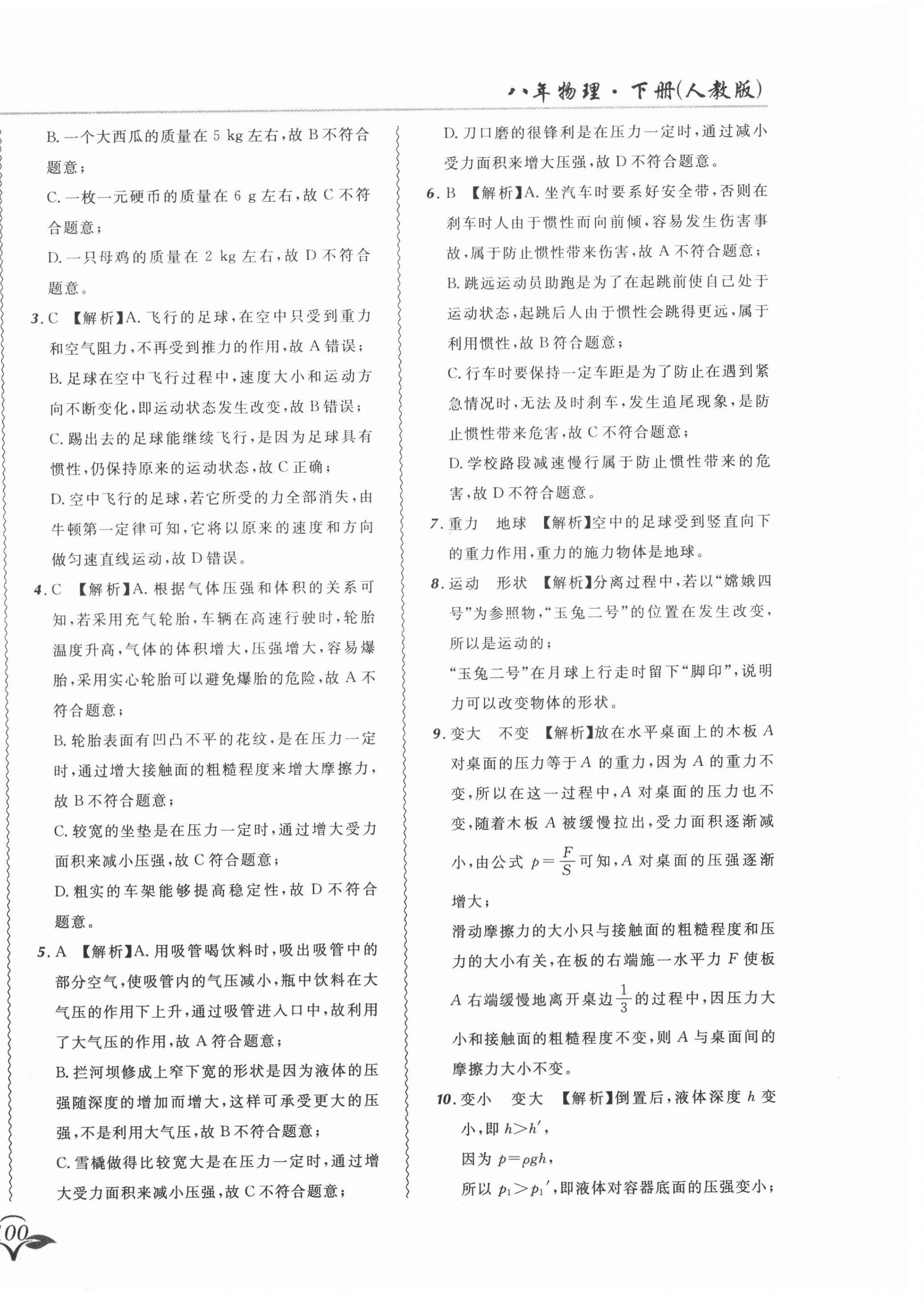 2021年北大绿卡课课大考卷八年级物理下册人教版