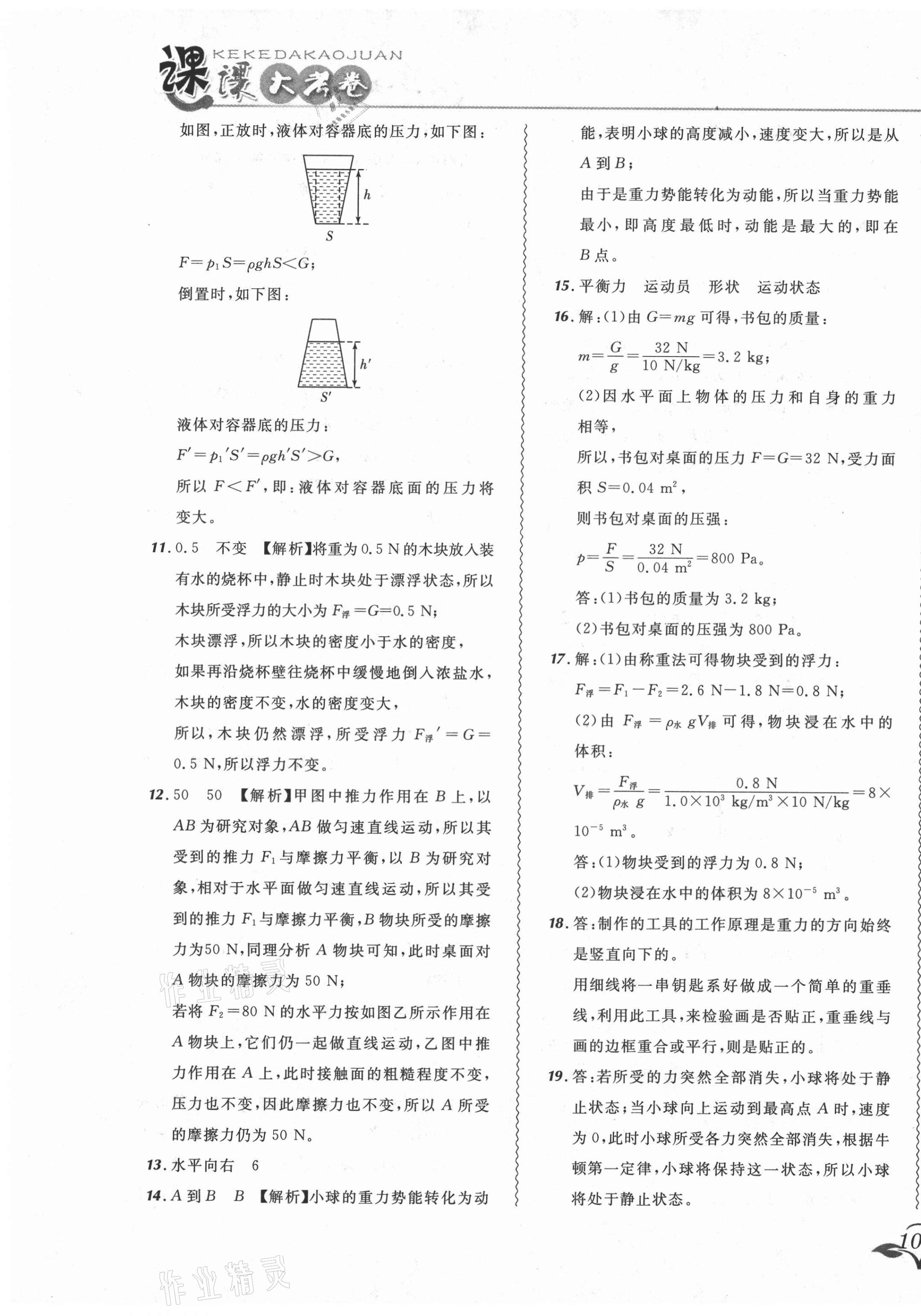 2021年北大绿卡课课大考卷八年级物理下册人教版