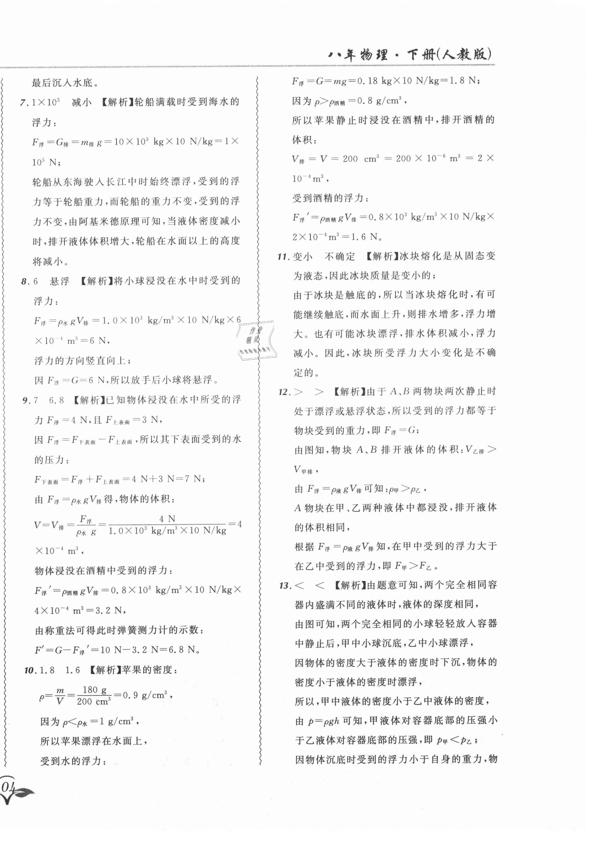 注:目前有些书本章节名称可能整理的还不是很完善,但都是按照顺序排列的,请同学们按照顺序仔细查找。练习册 2021年北大绿卡课课大考卷八年级物理下册人教版 答案主要是用来给同学们做完题方便对答案用的,请勿直接抄袭。