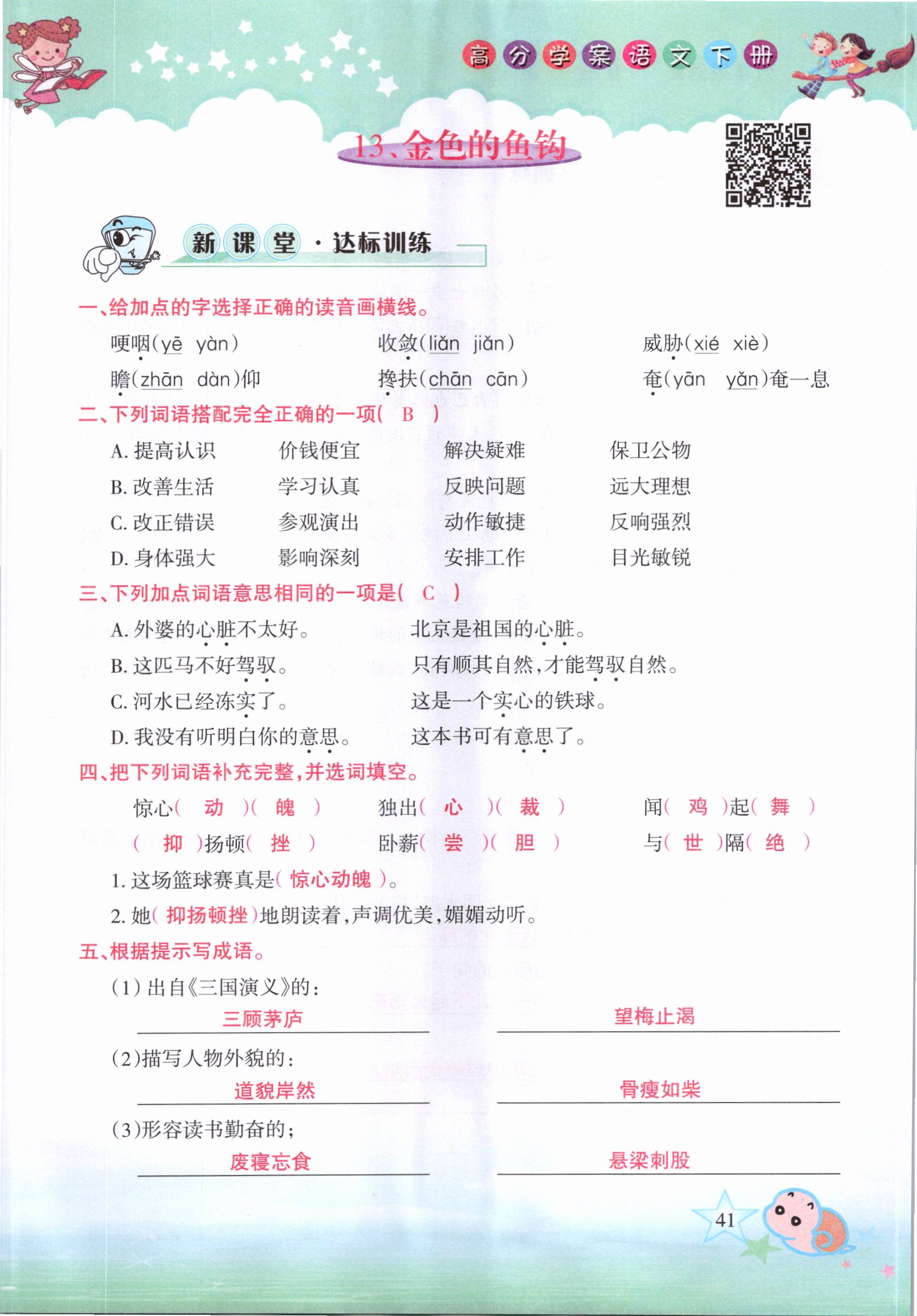 注:目前有些书本章节名称可能整理的还不是很完善,但都是按照顺序排列的,请同学们按照顺序仔细查找。练习册 2021年高分学案赢在新课堂六年级语文下册人教版 答案主要是用来给同学们做完题方便对答案用的,请勿直接抄袭。