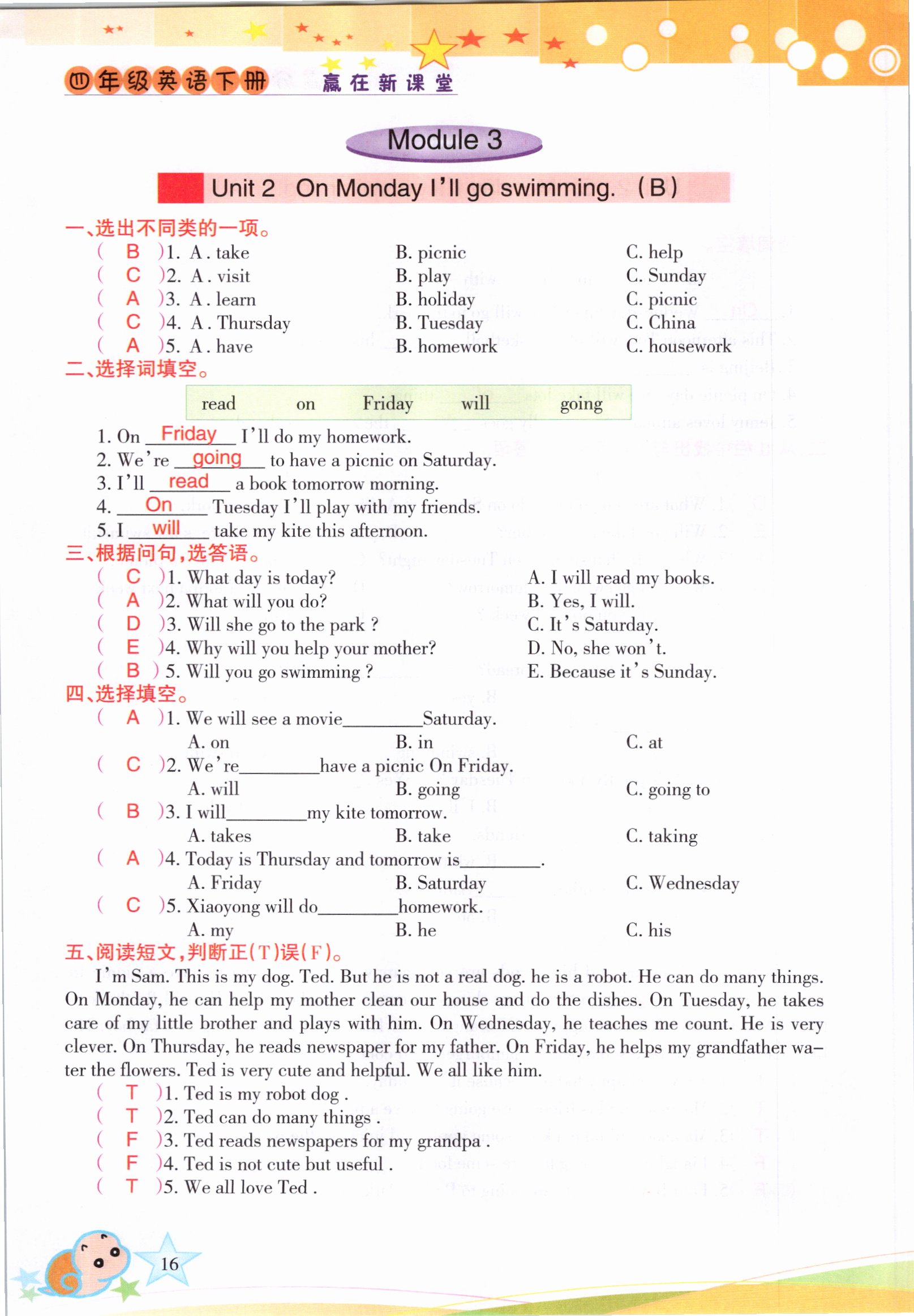 注:目前有些书本章节名称可能整理的还不是很完善,但都是按照顺序排列的,请同学们按照顺序仔细查找。练习册 2021年高分学案赢在新课堂四年级英语下册外研版 答案主要是用来给同学们做完题方便对答案用的,请勿直接抄袭。