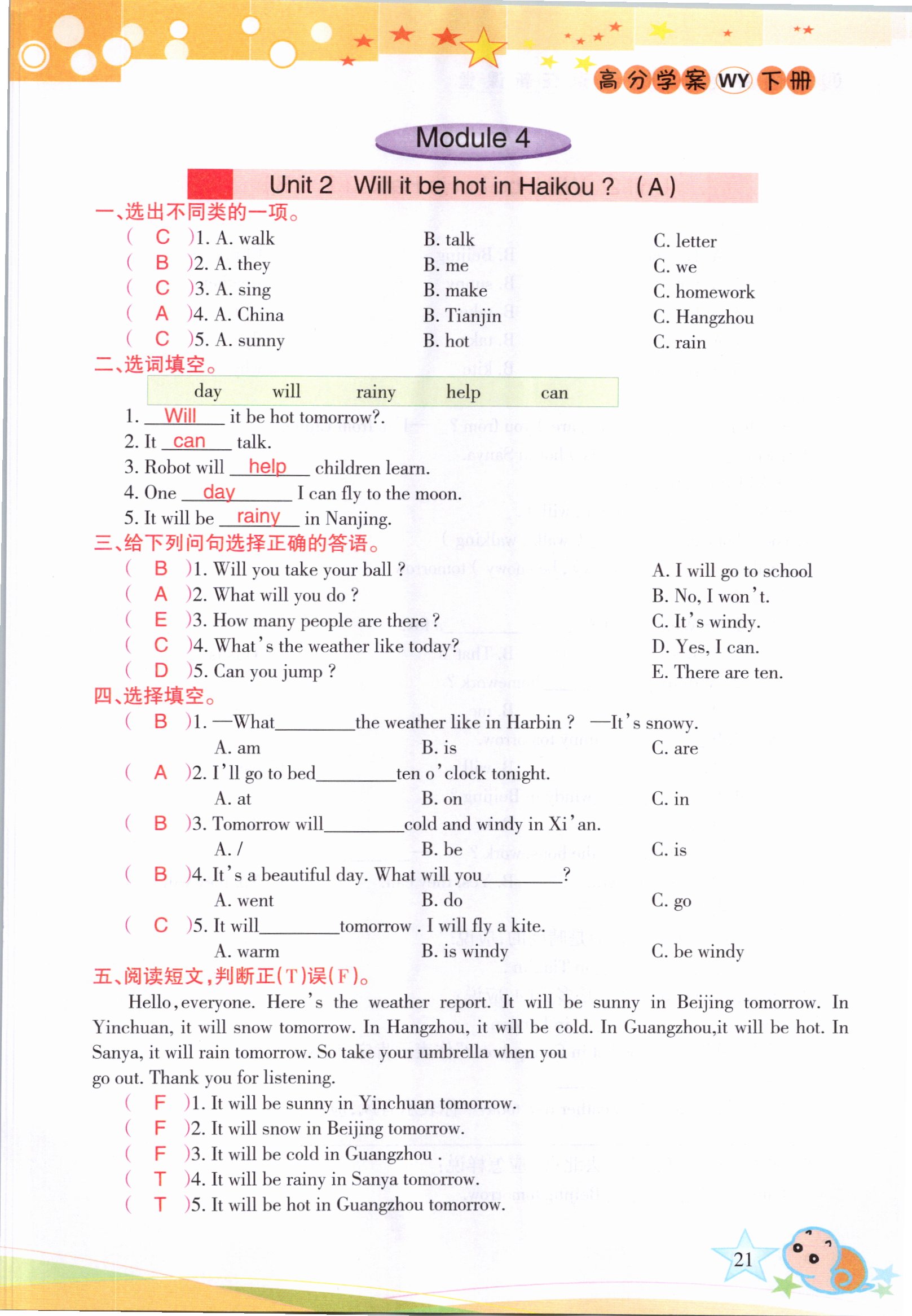注:目前有些书本章节名称可能整理的还不是很完善,但都是按照顺序排列的,请同学们按照顺序仔细查找。练习册 2021年高分学案赢在新课堂四年级英语下册外研版 答案主要是用来给同学们做完题方便对答案用的,请勿直接抄袭。