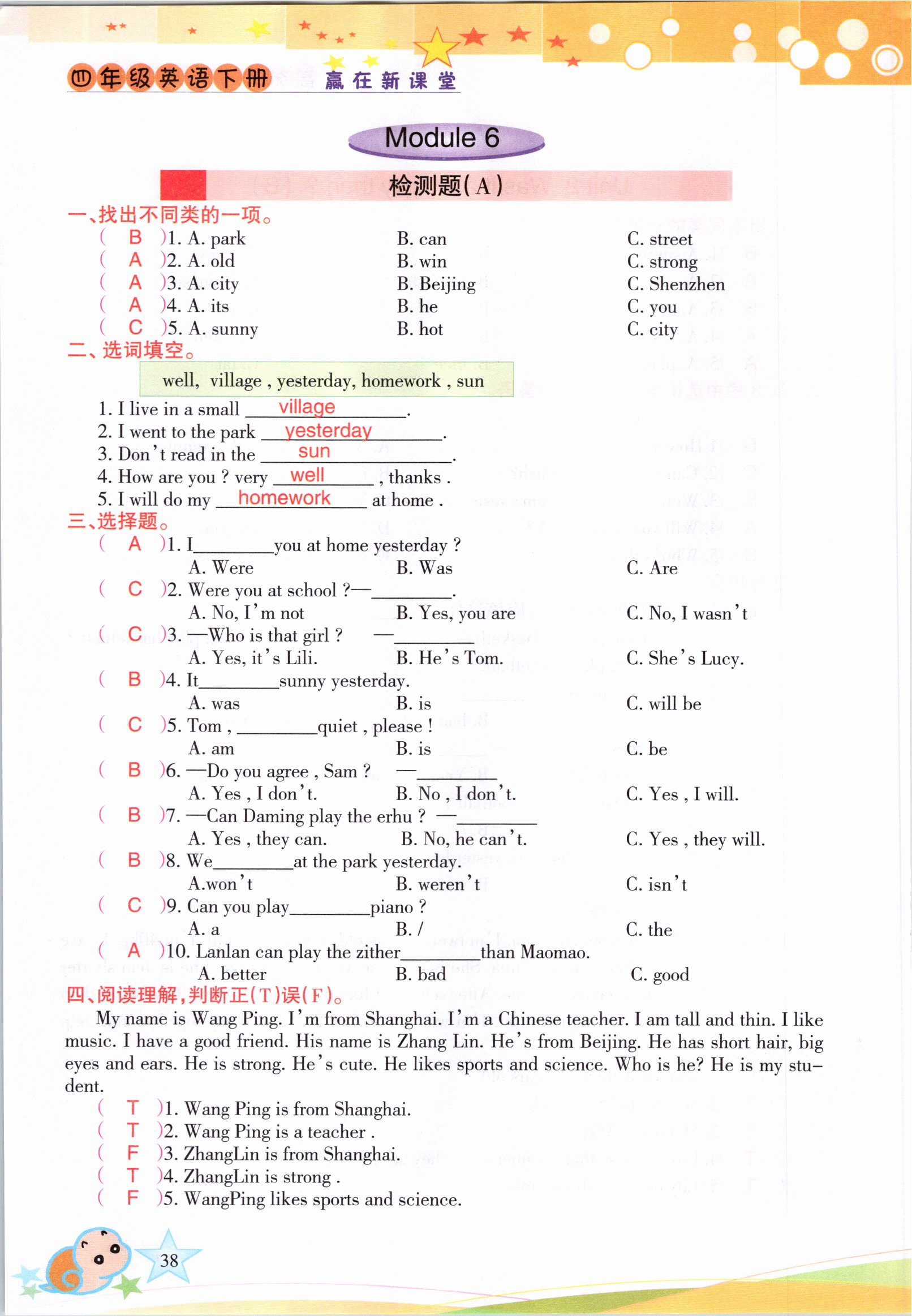 注:目前有些书本章节名称可能整理的还不是很完善,但都是按照顺序排列的,请同学们按照顺序仔细查找。练习册 2021年高分学案赢在新课堂四年级英语下册外研版 答案主要是用来给同学们做完题方便对答案用的,请勿直接抄袭。