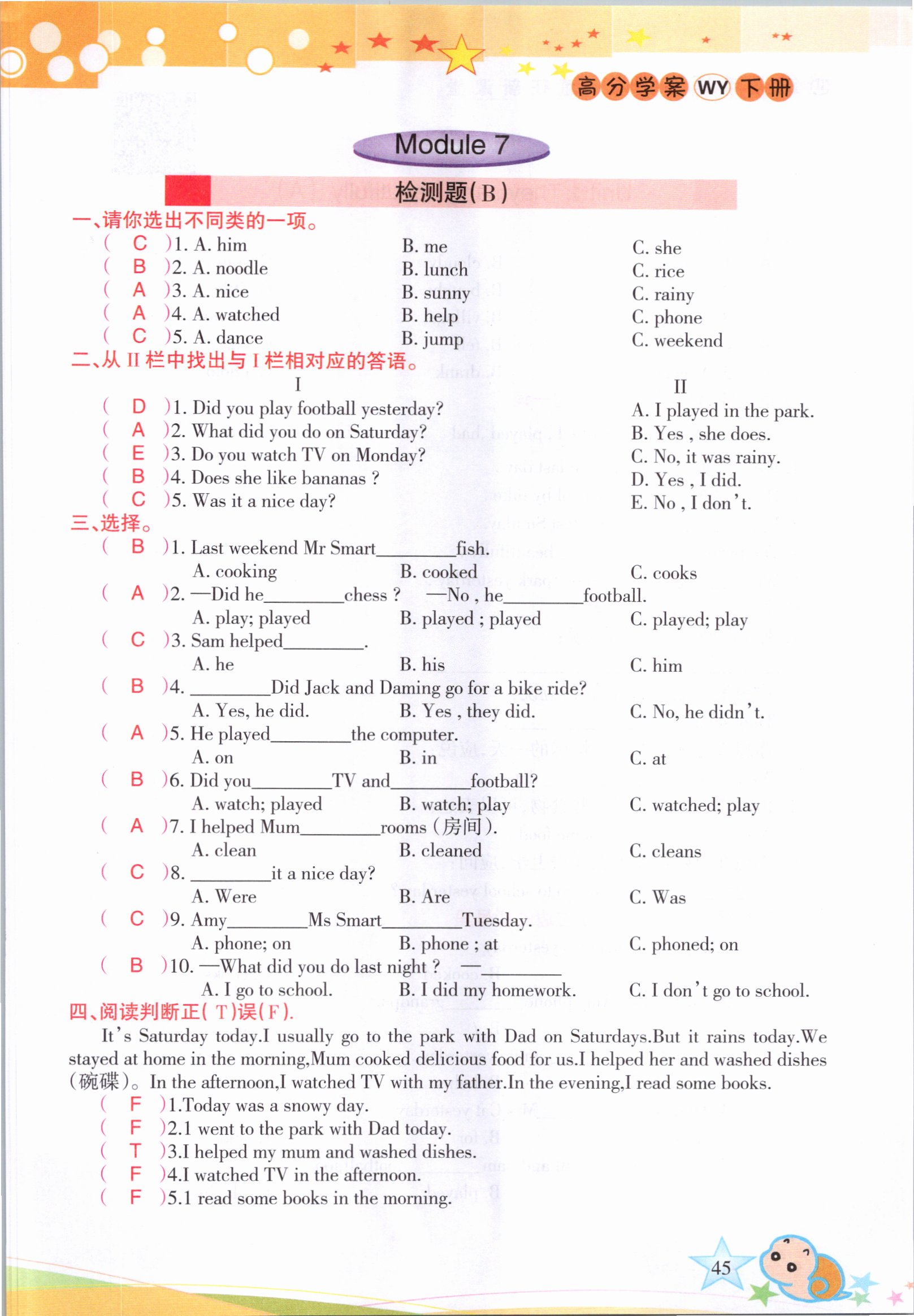 注:目前有些书本章节名称可能整理的还不是很完善,但都是按照顺序排列的,请同学们按照顺序仔细查找。练习册 2021年高分学案赢在新课堂四年级英语下册外研版 答案主要是用来给同学们做完题方便对答案用的,请勿直接抄袭。