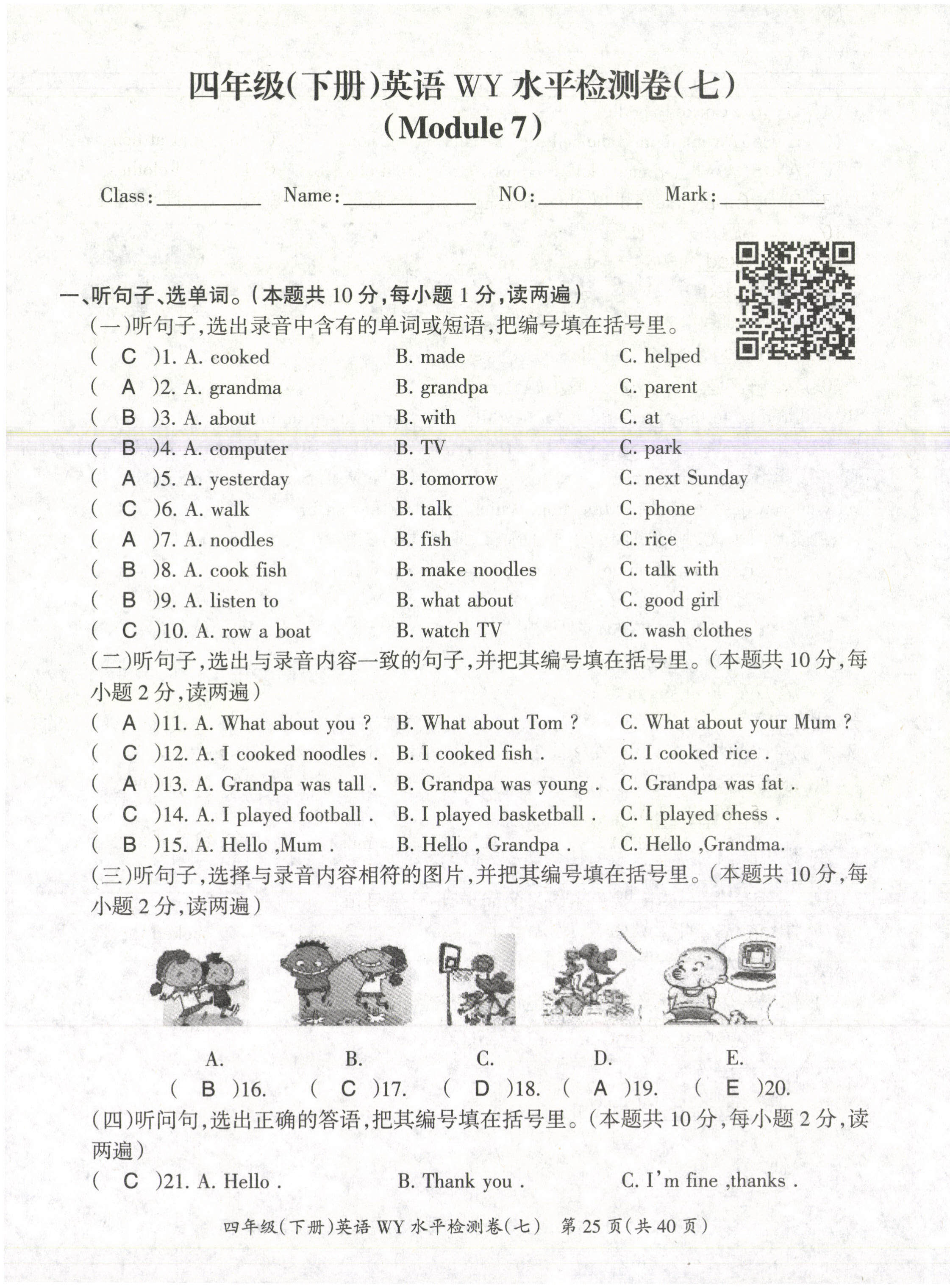 注:目前有些书本章节名称可能整理的还不是很完善,但都是按照顺序排列的,请同学们按照顺序仔细查找。练习册 2021年高分学案赢在新课堂四年级英语下册外研版 答案主要是用来给同学们做完题方便对答案用的,请勿直接抄袭。