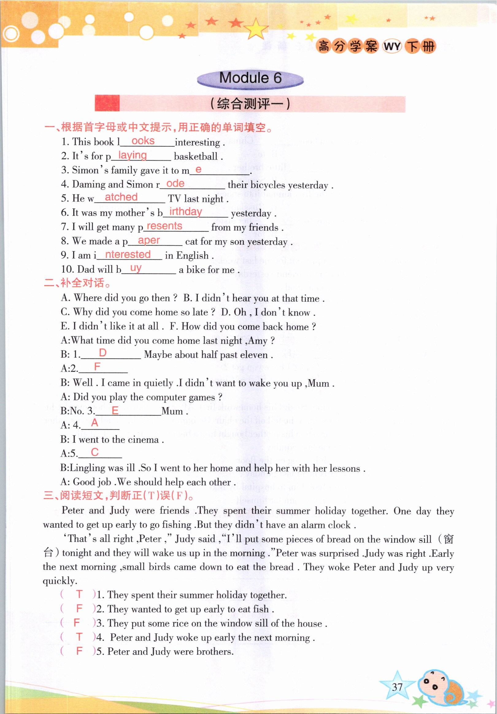 注:目前有些书本章节名称可能整理的还不是很完善,但都是按照顺序排列的,请同学们按照顺序仔细查找。练习册 2021年高分学案赢在新课堂六年级英语下册外研版 答案主要是用来给同学们做完题方便对答案用的,请勿直接抄袭。