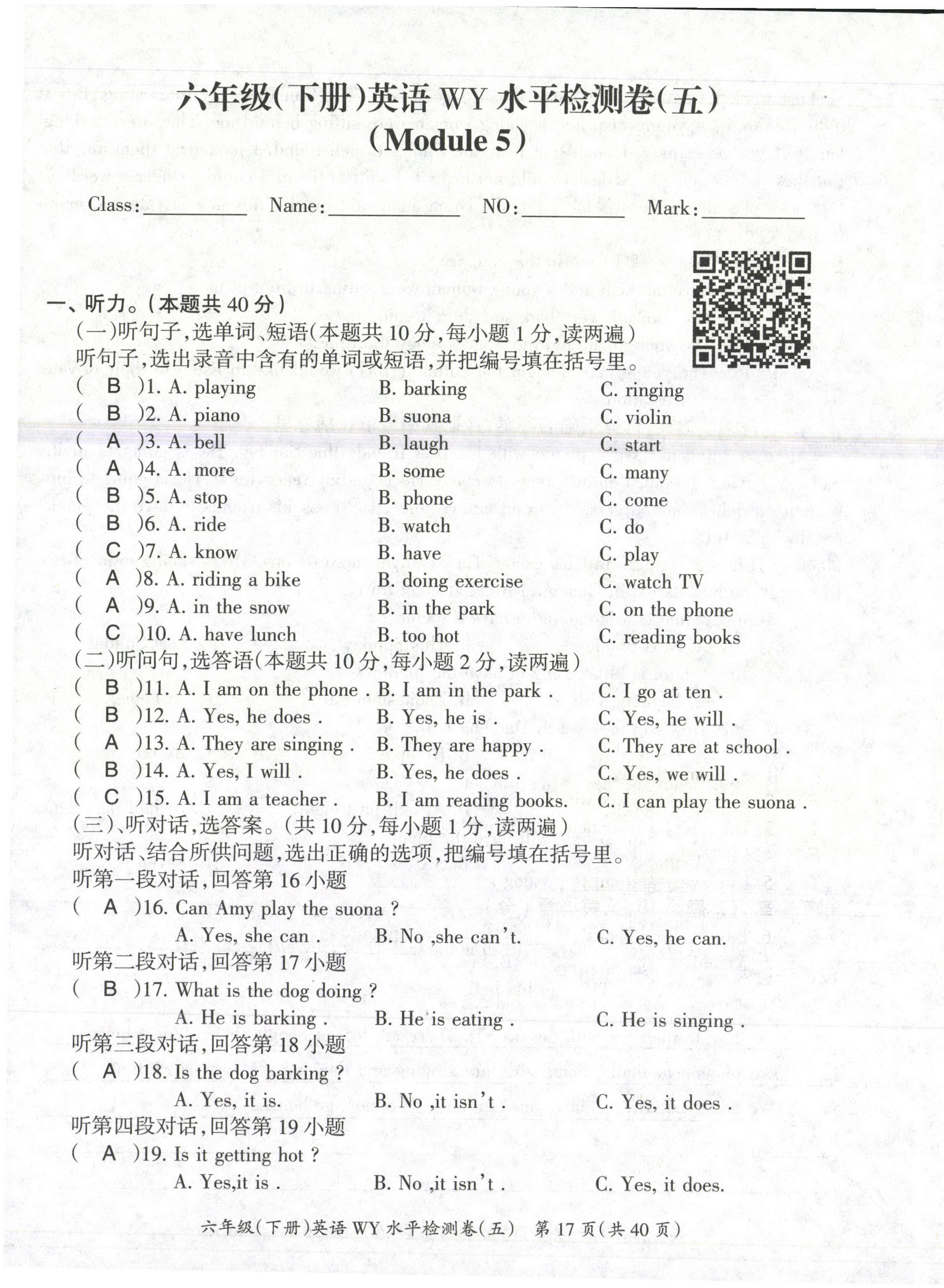 注:目前有些书本章节名称可能整理的还不是很完善,但都是按照顺序排列的,请同学们按照顺序仔细查找。练习册 2021年高分学案赢在新课堂六年级英语下册外研版 答案主要是用来给同学们做完题方便对答案用的,请勿直接抄袭。