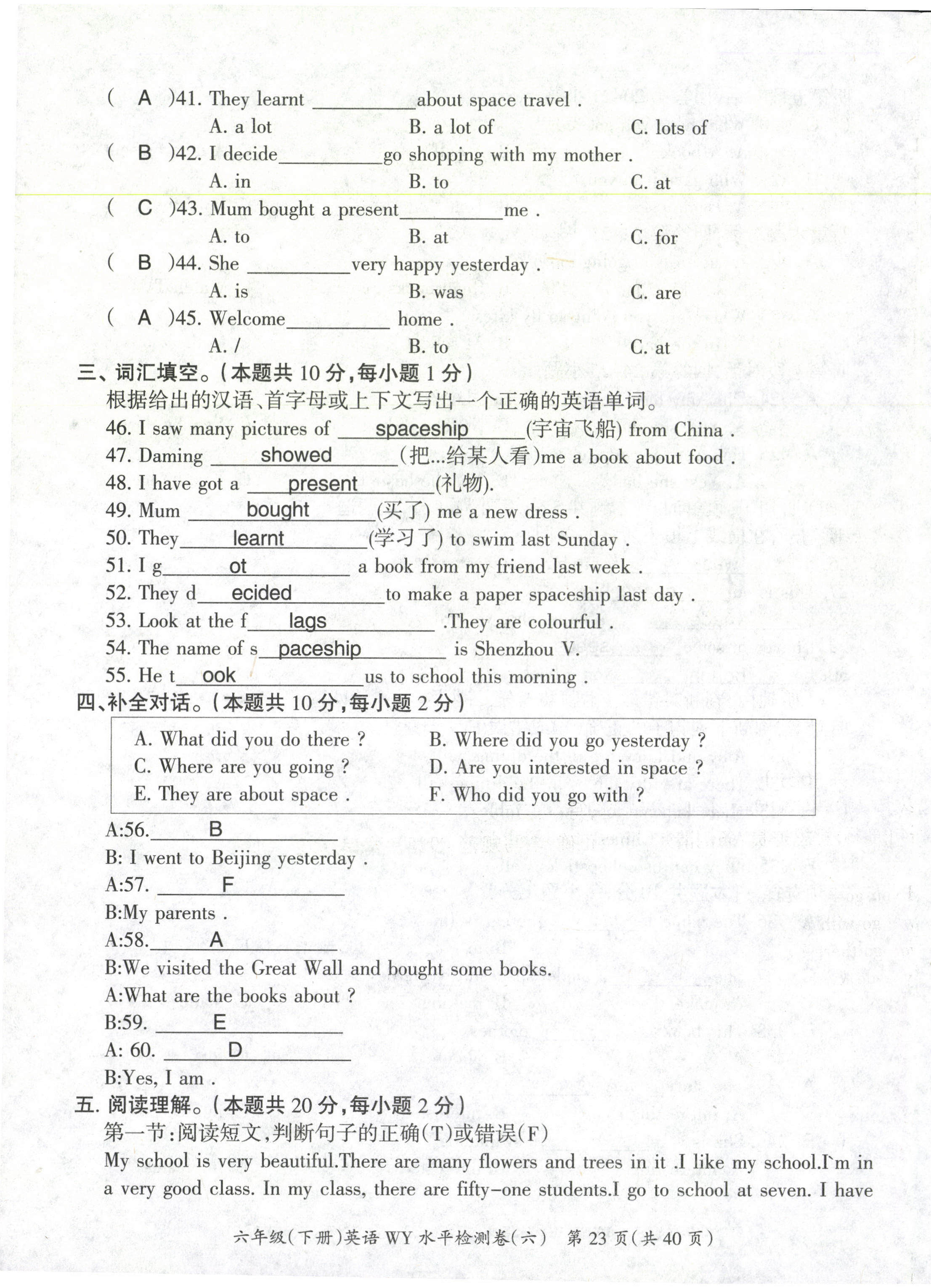 注:目前有些书本章节名称可能整理的还不是很完善,但都是按照顺序排列的,请同学们按照顺序仔细查找。练习册 2021年高分学案赢在新课堂六年级英语下册外研版 答案主要是用来给同学们做完题方便对答案用的,请勿直接抄袭。