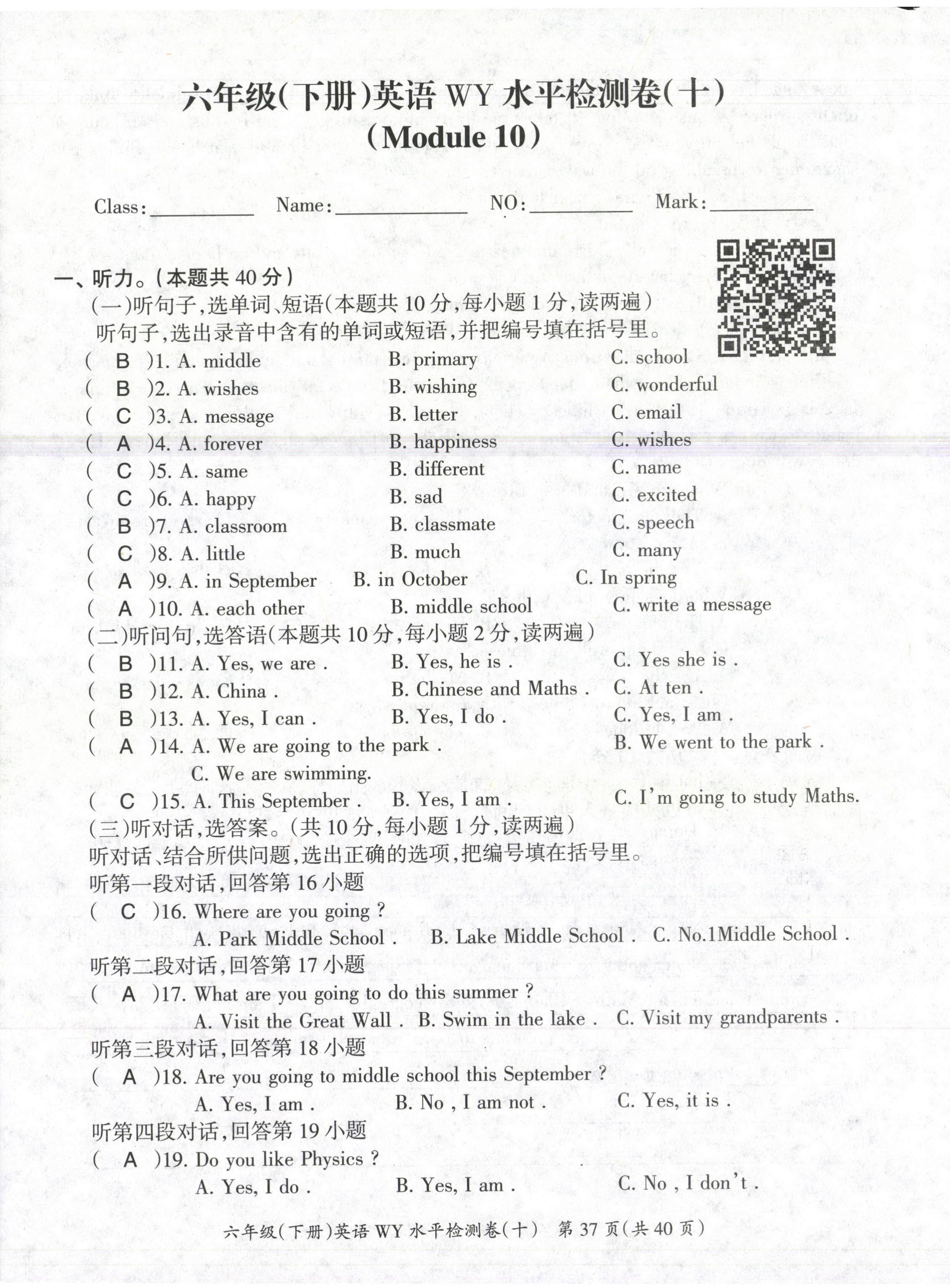 注:目前有些书本章节名称可能整理的还不是很完善,但都是按照顺序排列的,请同学们按照顺序仔细查找。练习册 2021年高分学案赢在新课堂六年级英语下册外研版 答案主要是用来给同学们做完题方便对答案用的,请勿直接抄袭。